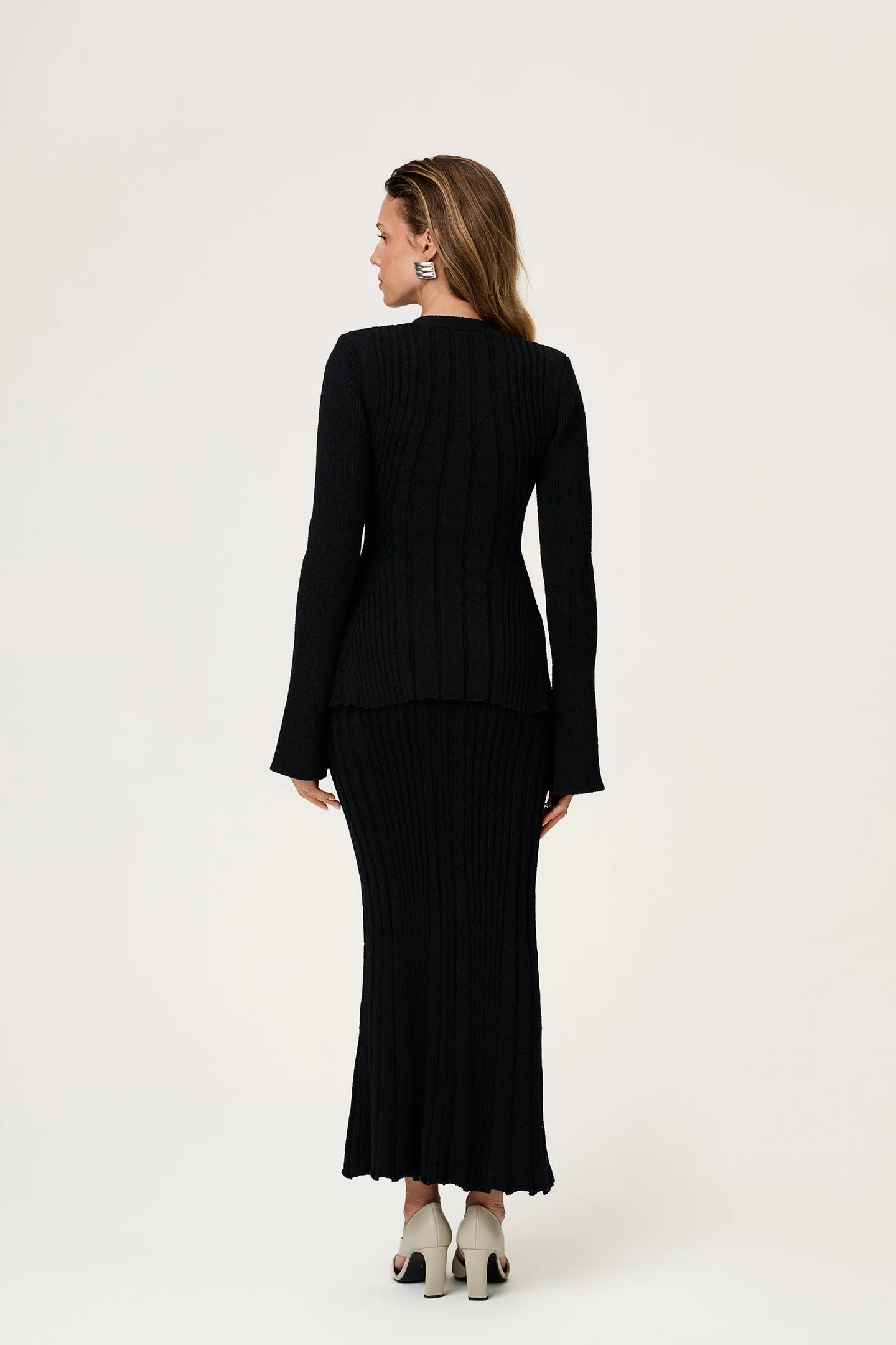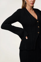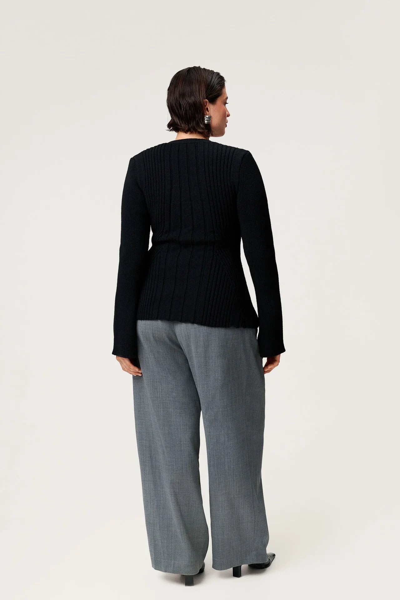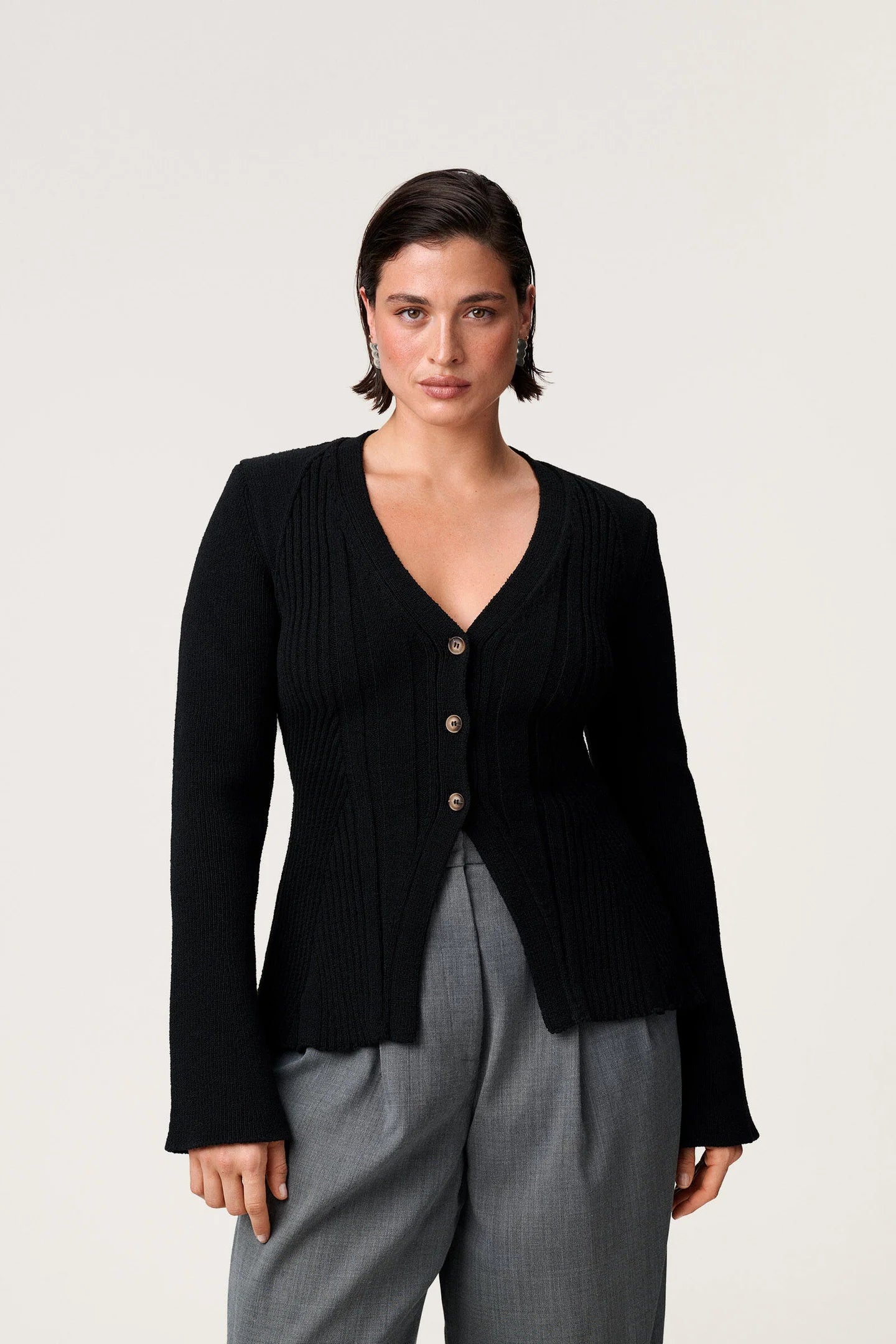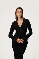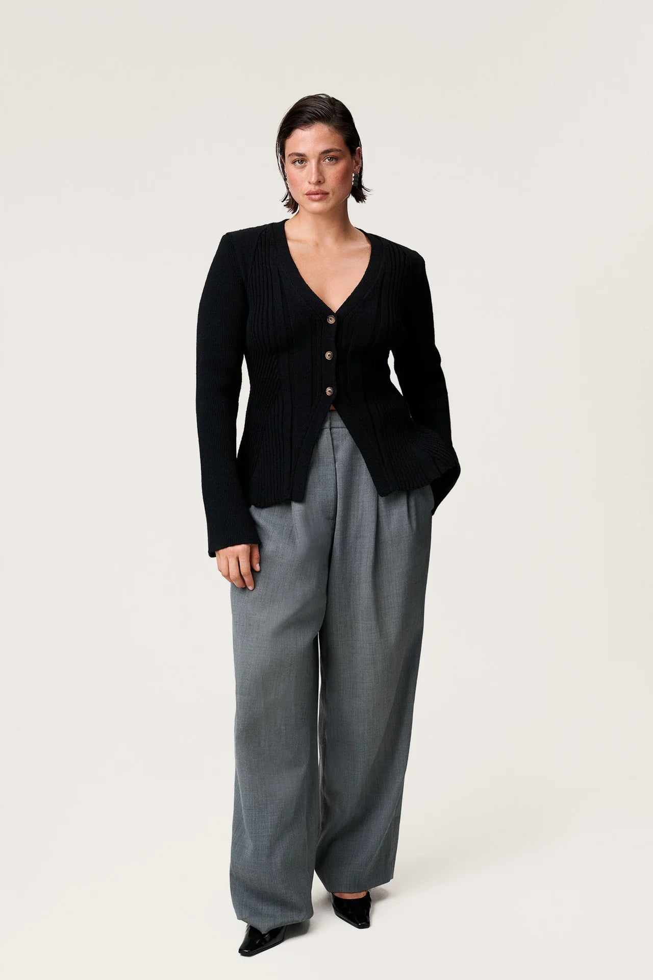Lugo Cardigan Black fra Adoore er en elegant cardigan med markerte skulderputer og innsvinget midje som fremhever silhuetten. De lange ermene avsluttes med brede mansjetter som gir et raffinert preg. Denne sesongen er modellen oppdatert med nytt materiale og en forbedret passform for ekstra komfort. Cardiganen bør brettes sammen fremfor å henges, for å bevare fasongen.
