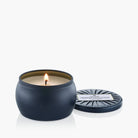 Mini Tin Candle fra Voluspa. Makassar Ebony & Peach Mini Tin Candle er et luksuriøst duftlys fra Voluspa med duft av sort ibenholt, modne fersken og epleblomst.