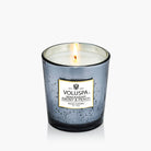Boxed Candle fra Voluspa. Makassar Ebony & Peach Mini Tin Candle er et luksuriøst duftlys fra Voluspa med duft av sort ibenholt, modne fersken og epleblomst.