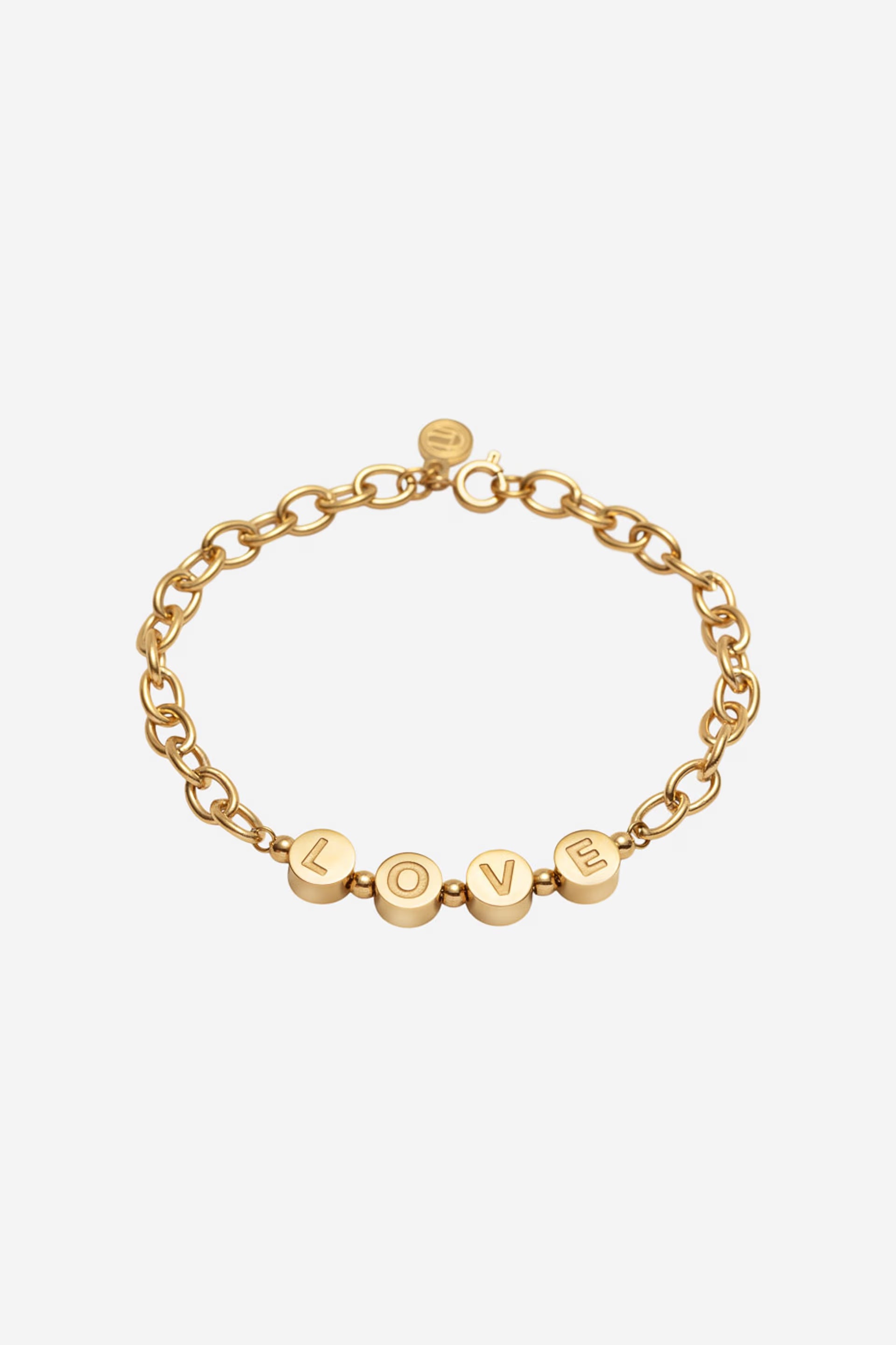 Armbåndet er laget i rustfritt stål belagt med 14K gull og er hypoallergent. Smykket er garantert nikkelfritt og egner seg også for sensitiv hud.