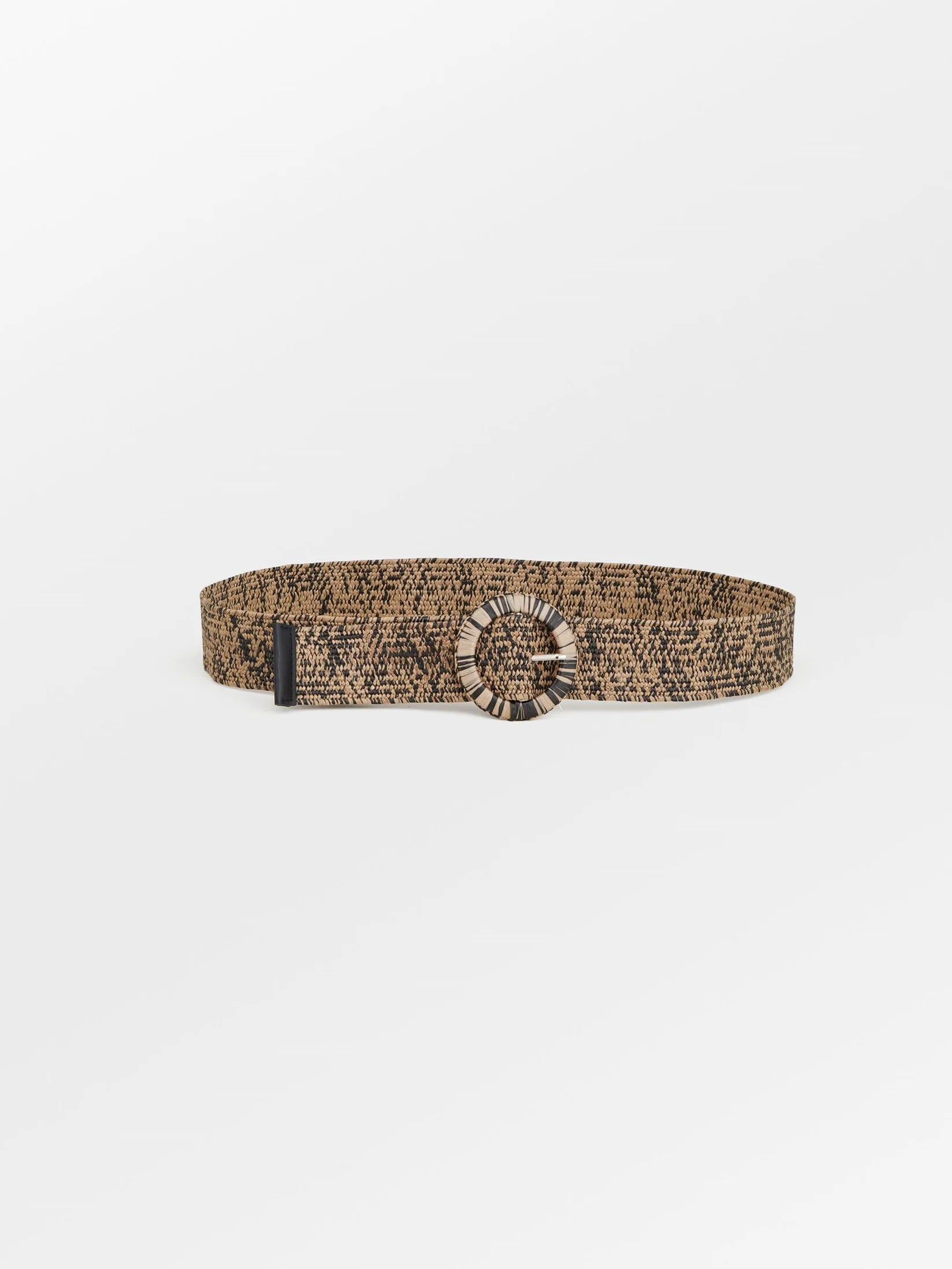 Wide Zia Belt er et bredt belte laget av papirstrå, designet med et enkelt og stilfullt utseende av Becksöndergaard.