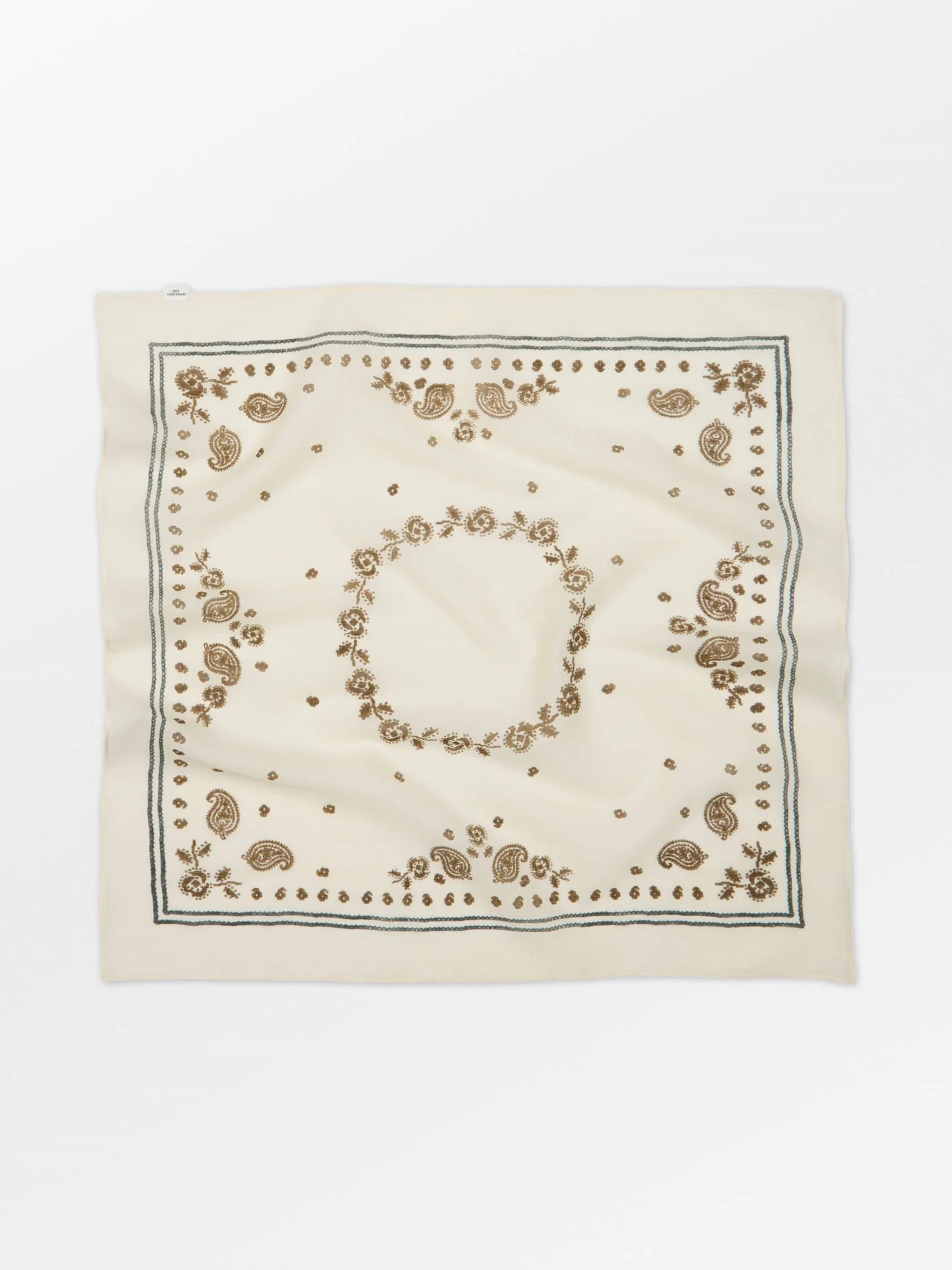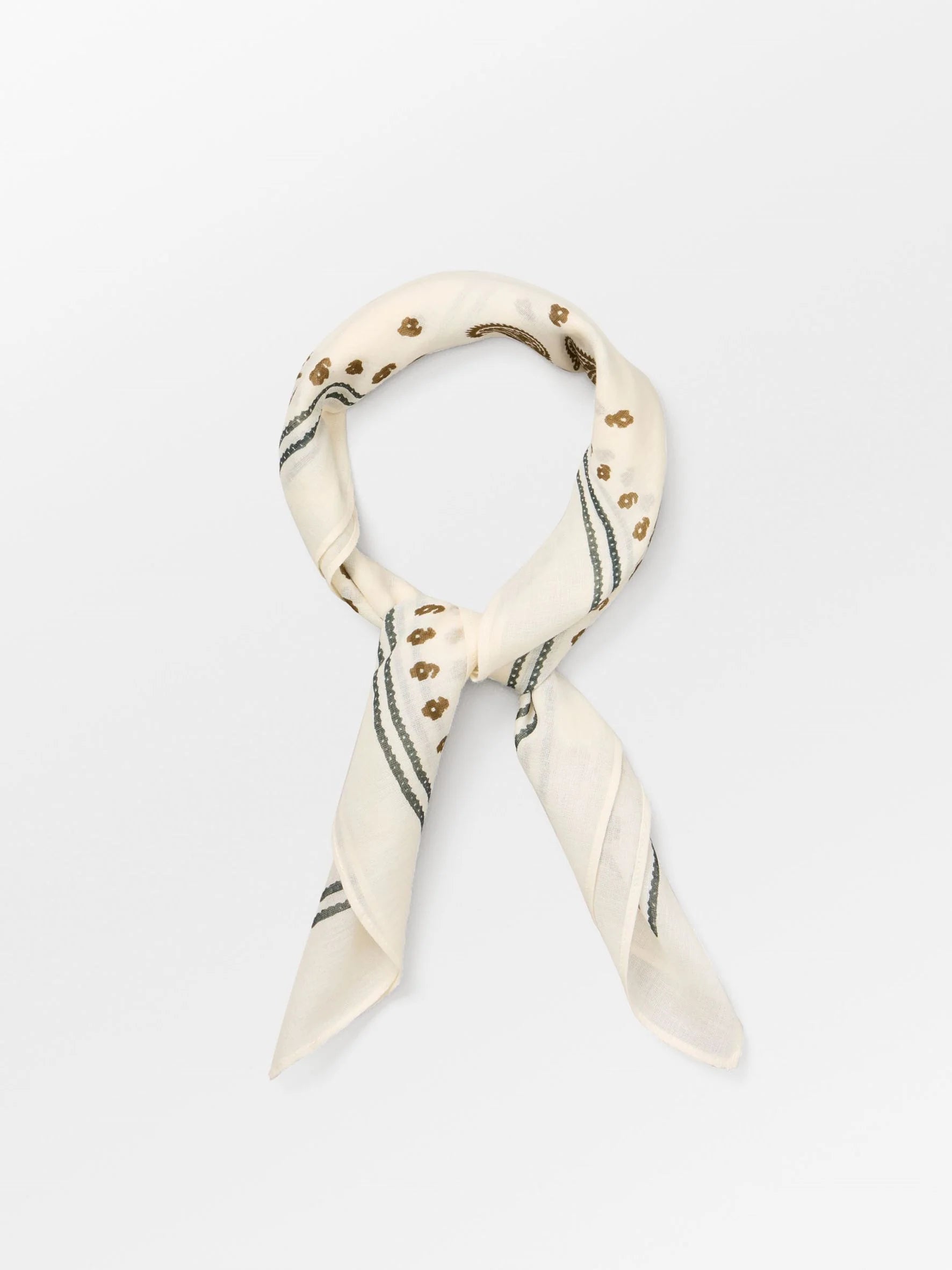 Bloom Paisley Cotta Scarf fra Becksöndergaard er et stilfullt skjerf laget av 100 % bomull. Med sine mål på 55 x 55 cm er det perfekte tilbehøret for å tilføre både eleganse og personlighet til antrekket. Skjerfet har et feminint print med mange fine detaljer som gjør det til et blikkfang. Det kan brukes rundt halsen, som belte eller knyttes på vesken for en moderne og individuell touch.