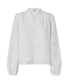 Nydelig langermet bluse fra Mbym! V-hals og nydelige blonder. Strikk nederst på ermene som gir et lekkert uttrykk.