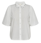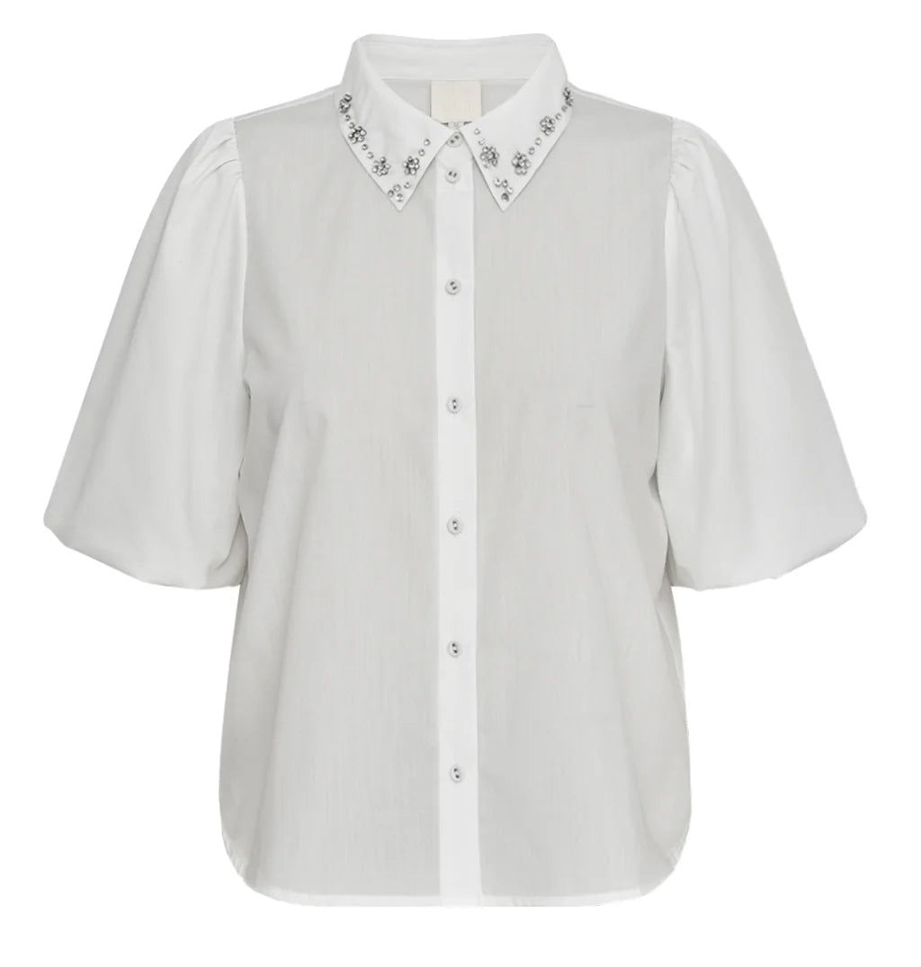 Denne elegante og feminine skjorten kombinerer klassisk snitt med moderne detaljer. De voluminøse puffermene med ballongeffekt gir et unikt uttrykk, mens de glitrende similistenene på kragen tilfører et subtilt festpreg. Skjorten er laget i en myk og behagelig kvalitet som føles eksklusiv mot huden. En perfekt balanse mellom tidløs eleganse og diskret glam, ideell til både hverdagsbruk og spesielle anledninger.
