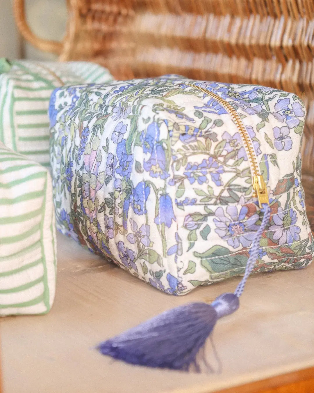 Cosmetic Bag fra byTiMo er laget av en delikat og myk bomull med vakre quiltede detaljer. Den har en firkantet form, er romslig og designet for å oppbevare dine daglige nødvendigheter. En perfekt og elegant veske, enten du ønsker å organisere baderommet ditt på en stilfull måte eller ta med deg favorittproduktene dine på farten. Vesken har en praktisk sidelomme med glidelåslukking, er helfôret innvendig og lukkes med en glidelås på toppen, dekorert med en dusk.