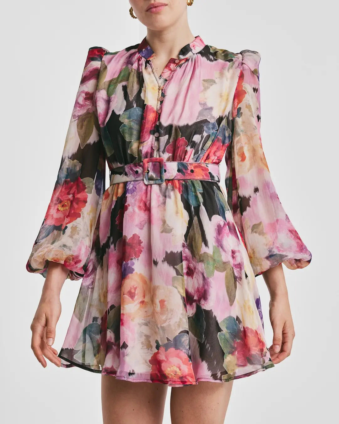 Organza Mini Dress fra byTiMo er laget i en elegant og lett transparent FSC-sertifisert viskosekvalitet. Kjolen har minilengde med et figurnært liv og utsvingt A-linjeformet skjørt. Den har mandarin-krage og lange, voluminøse ermer med elastiske mansjetter. Kjolen lukkes med glidelås i siden, leveres med matchende belte og er den perfekte kombinasjonen av feminint og sofistikert uttrykk.