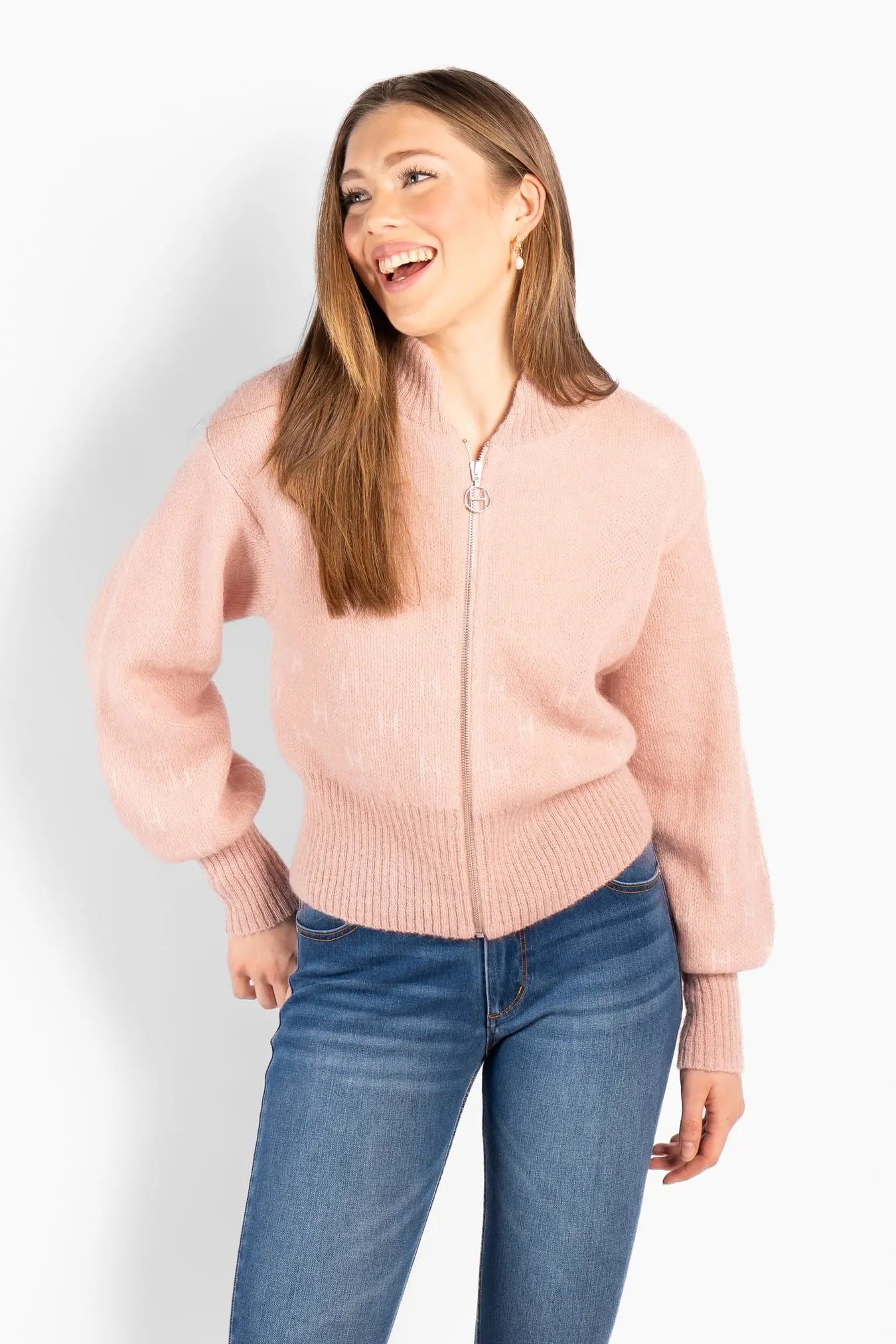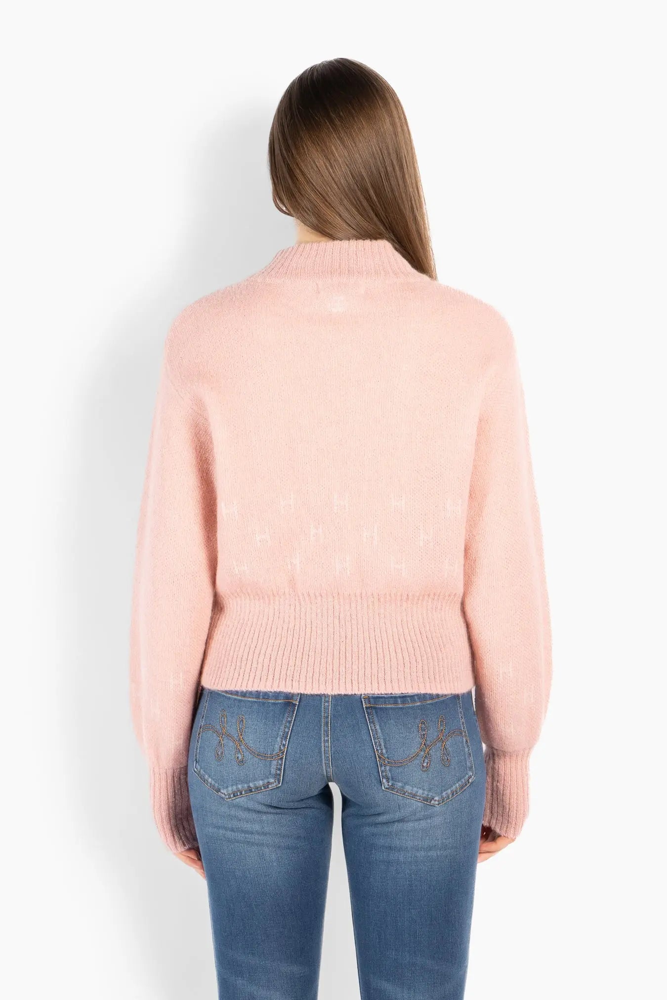 Märtha Short Jacket er en kort, strikket jakke med glidelåslukking og høye ribbekanter nederst og på ermene. Den feminine og definerte silhuetten gir et elegant uttrykk, med diskrete H-logoer, strikket inn i mønsteret, tilfører en fin detalj. Jakken er strikket i en myk ullblanding med et hint av kid mohair, som gir lett struktur, varme og en tidløs følelse – perfekt for en sofistikert, men avslappet stil.