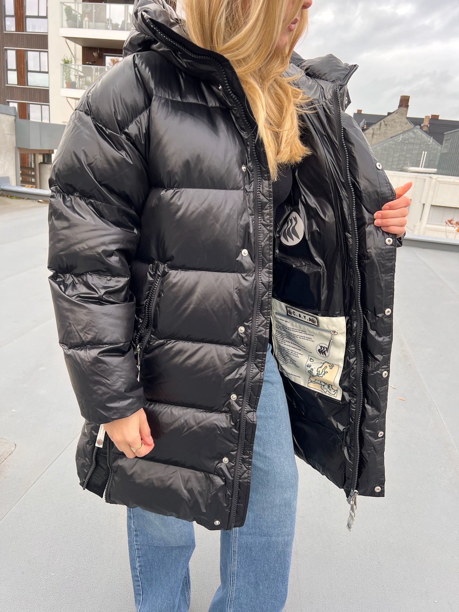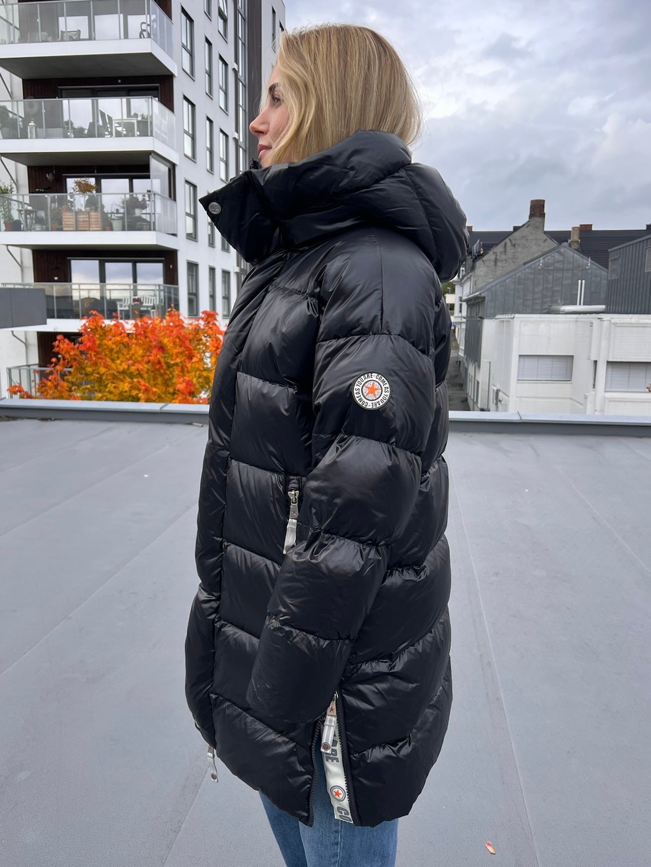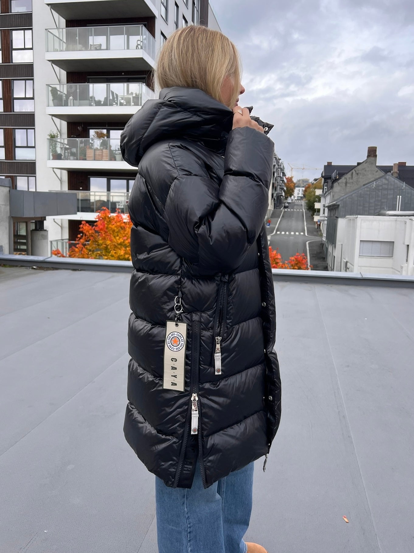 Ginny fra C.A.Y.A. (Come As You Are) er en romslig dunjakke. Ginny er en dunjakken som er lett i materiale og har splitt i sidene med glidelås for justerbar passform. I front har jakken glidelås og knepping med romslig hette og praktiske remmer på innsiden. Den har kule detaljer og holder deg varm hele vinteren.