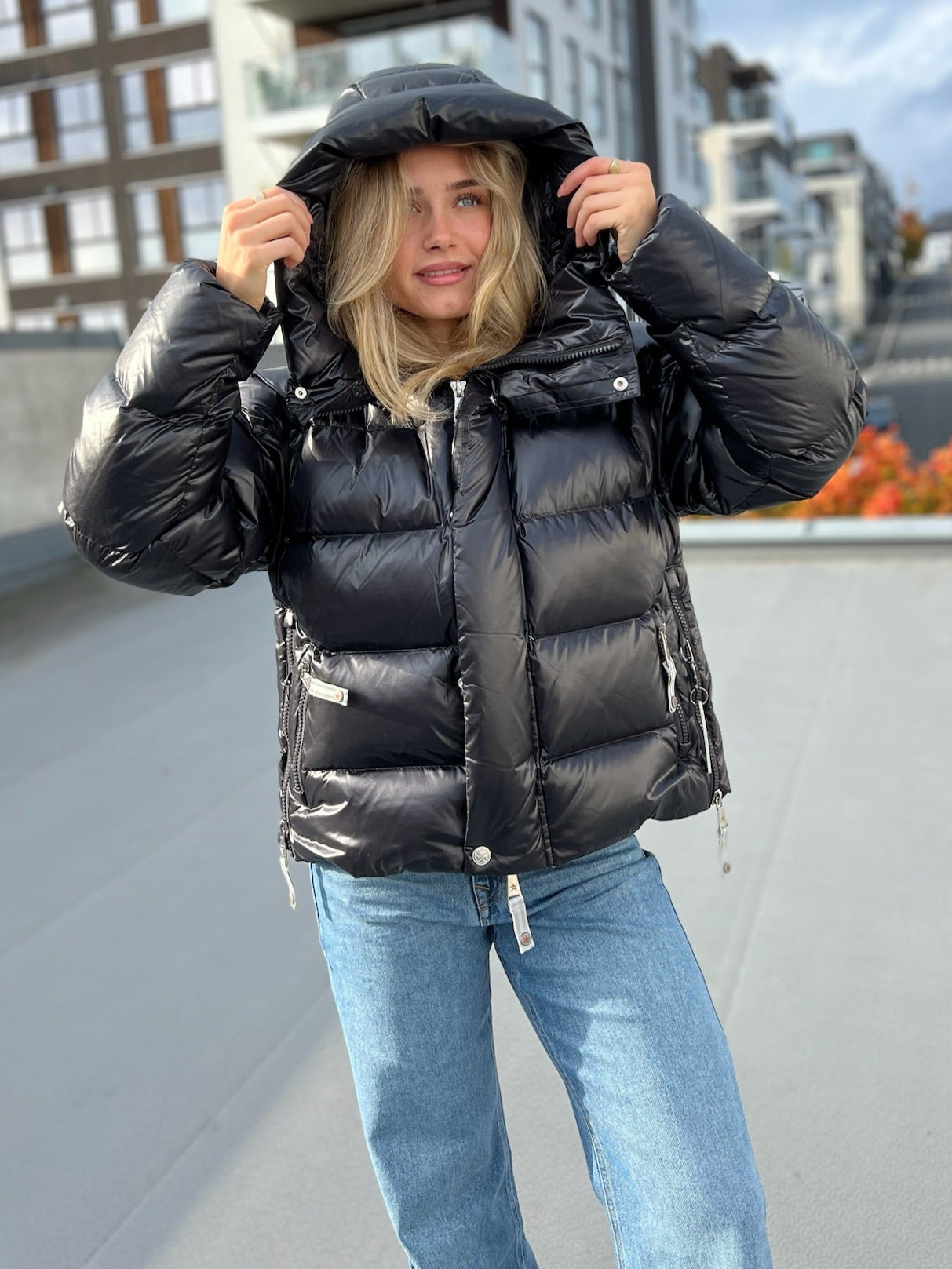 Ginny Short fra C.A.Y.A. (Come As You Are) er en kort dunjakke. Ginny er romslig i størrelsen. Ønsker du dunjakken tettsittende burde du gå ned en størrelse. Den er lett i materiale og har splitt i sidene med glidelås for justerbar passform. I front har jakken glidelås og knepping med romslig hette og praktiske remmer på innsiden. Den har kule detaljer og holder deg varm hele vinteren.