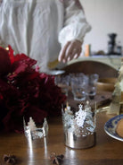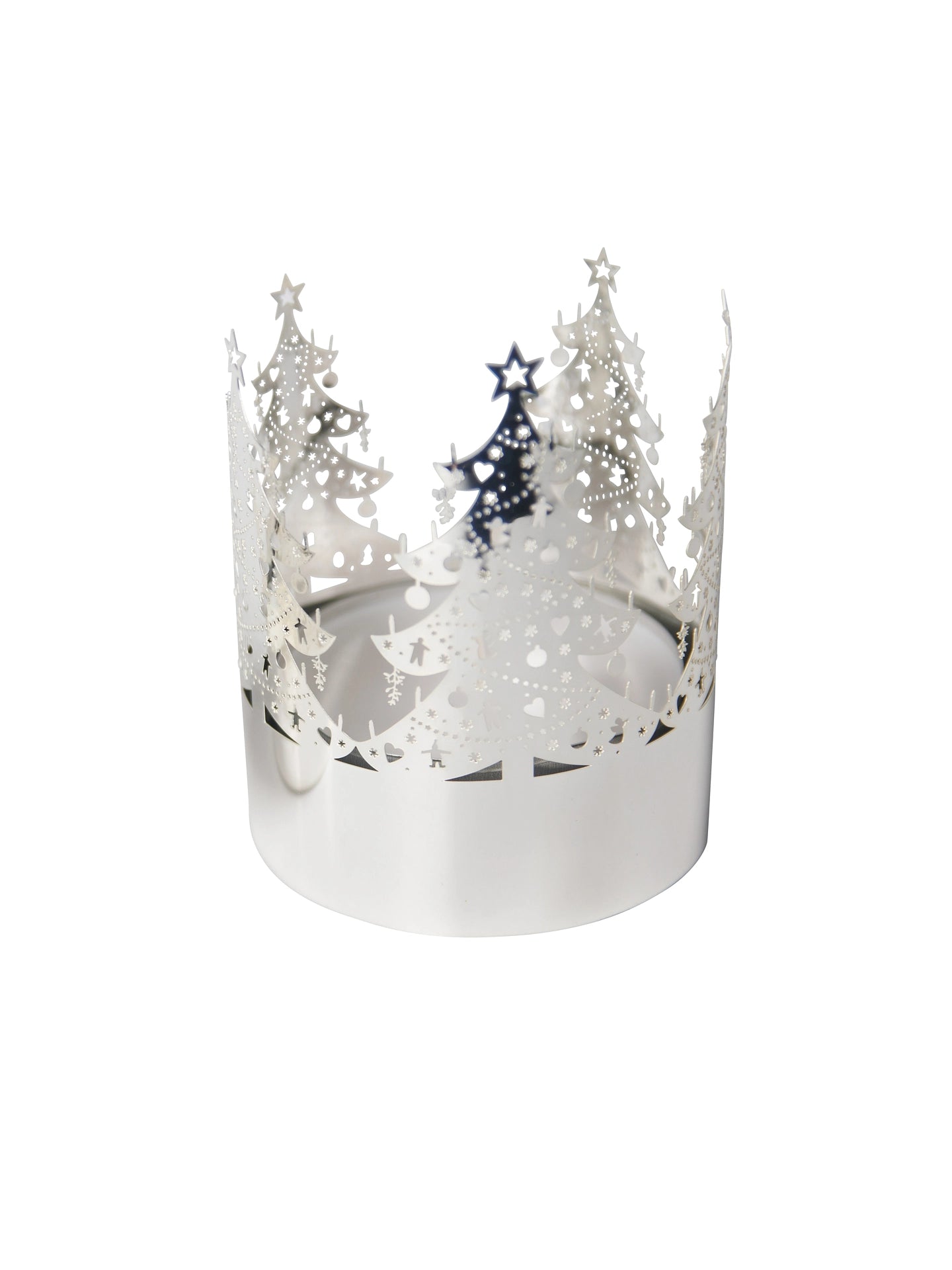 Medium telysholder med sølvfargede juletrær i metall. Passer til både små og store telys, og skaper en varm og stemningsfull glød i vintermørket.