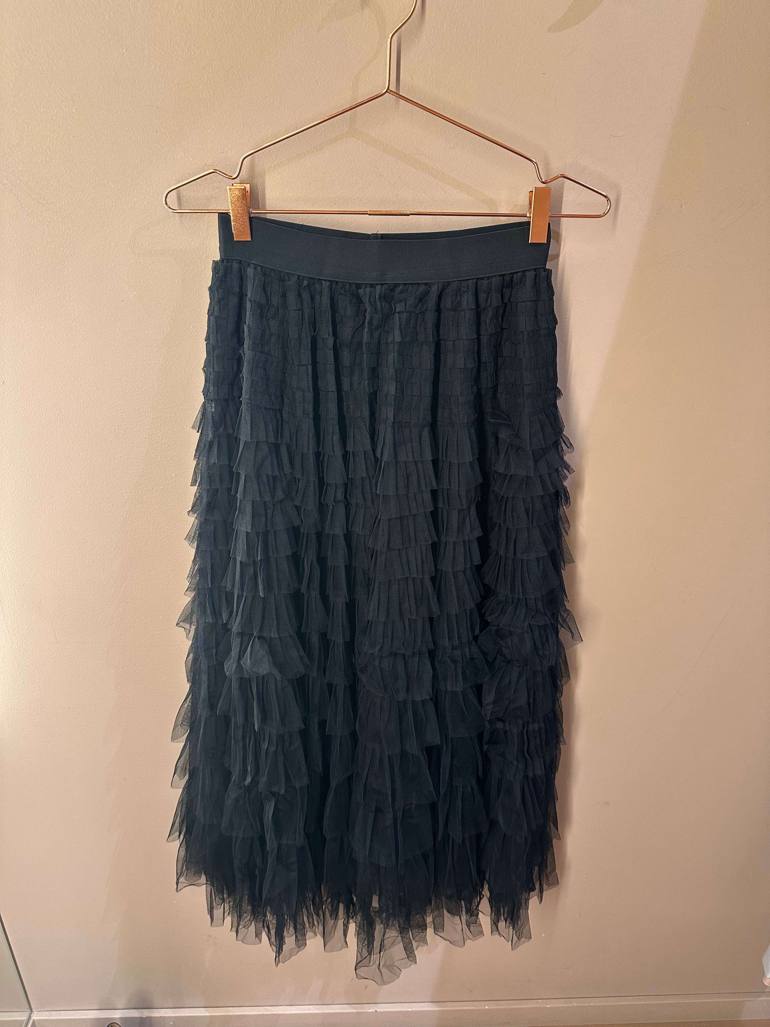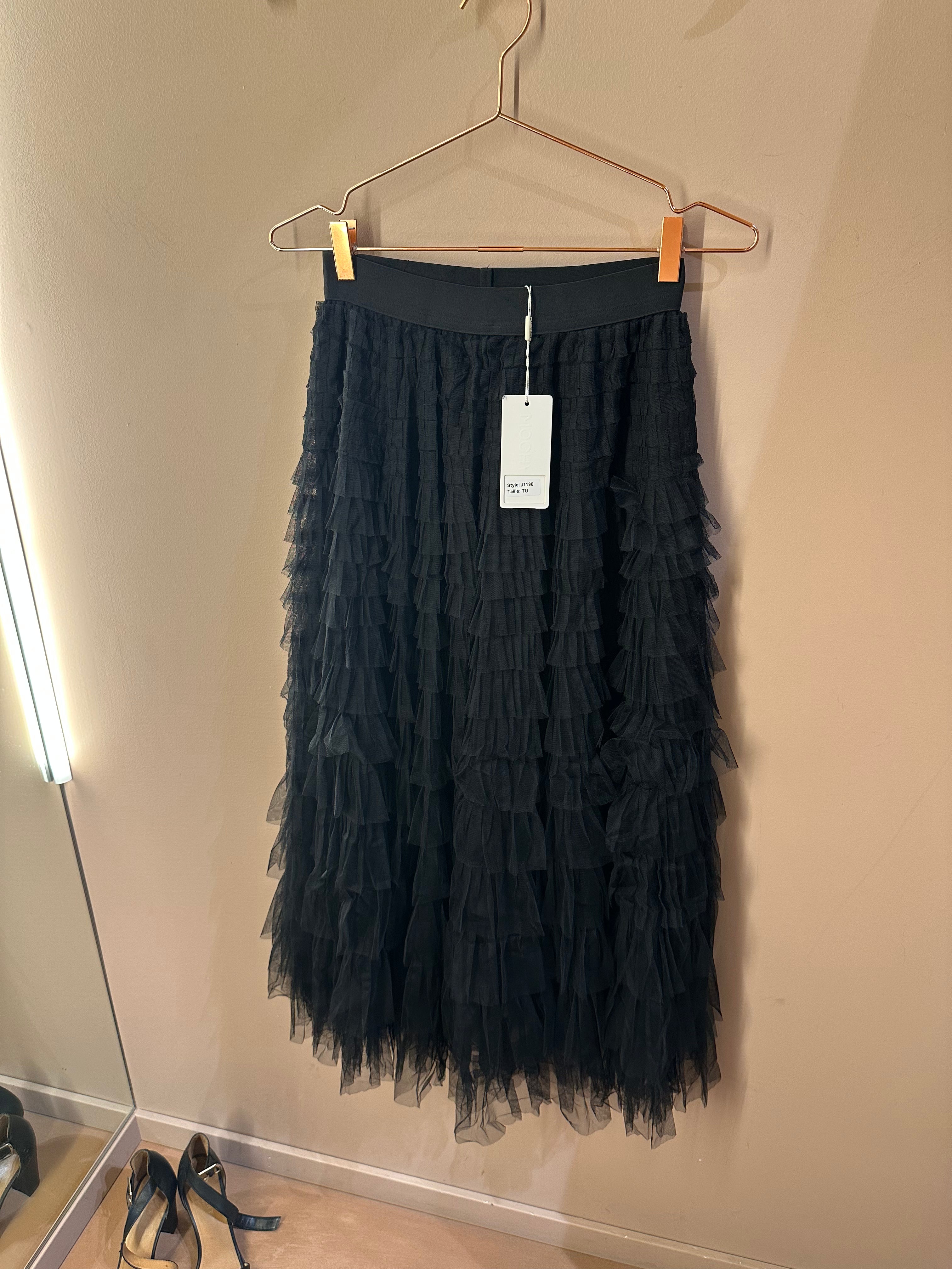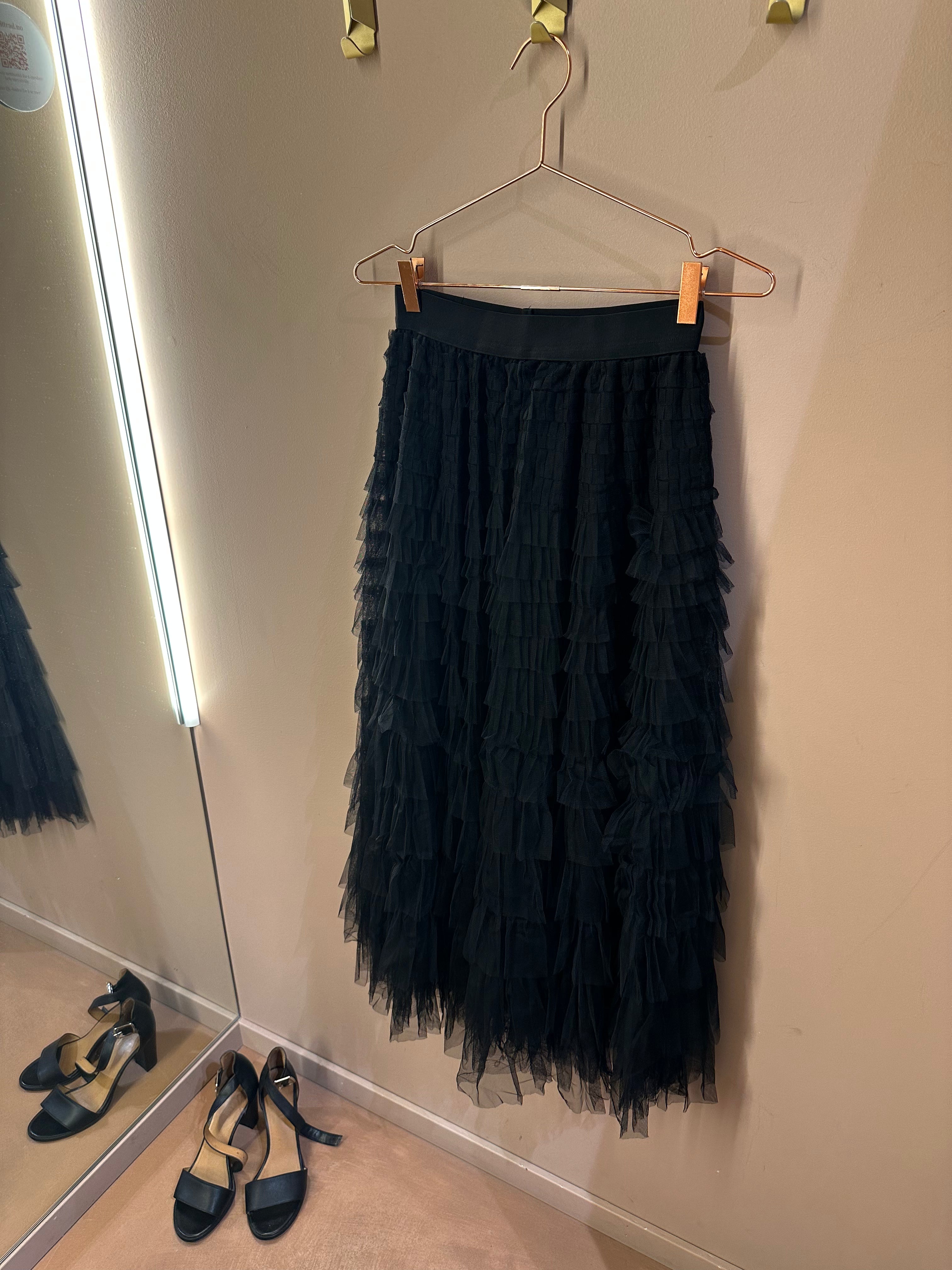 Kappeskjørt Black er et nydelig svart tyllskjørt med strikk og knyting i livet fra From Paris With Love. Dette skjørtet sitter veldig pent på og går til ankelen. Style det med en skjorte eller en stor strikkegenser.