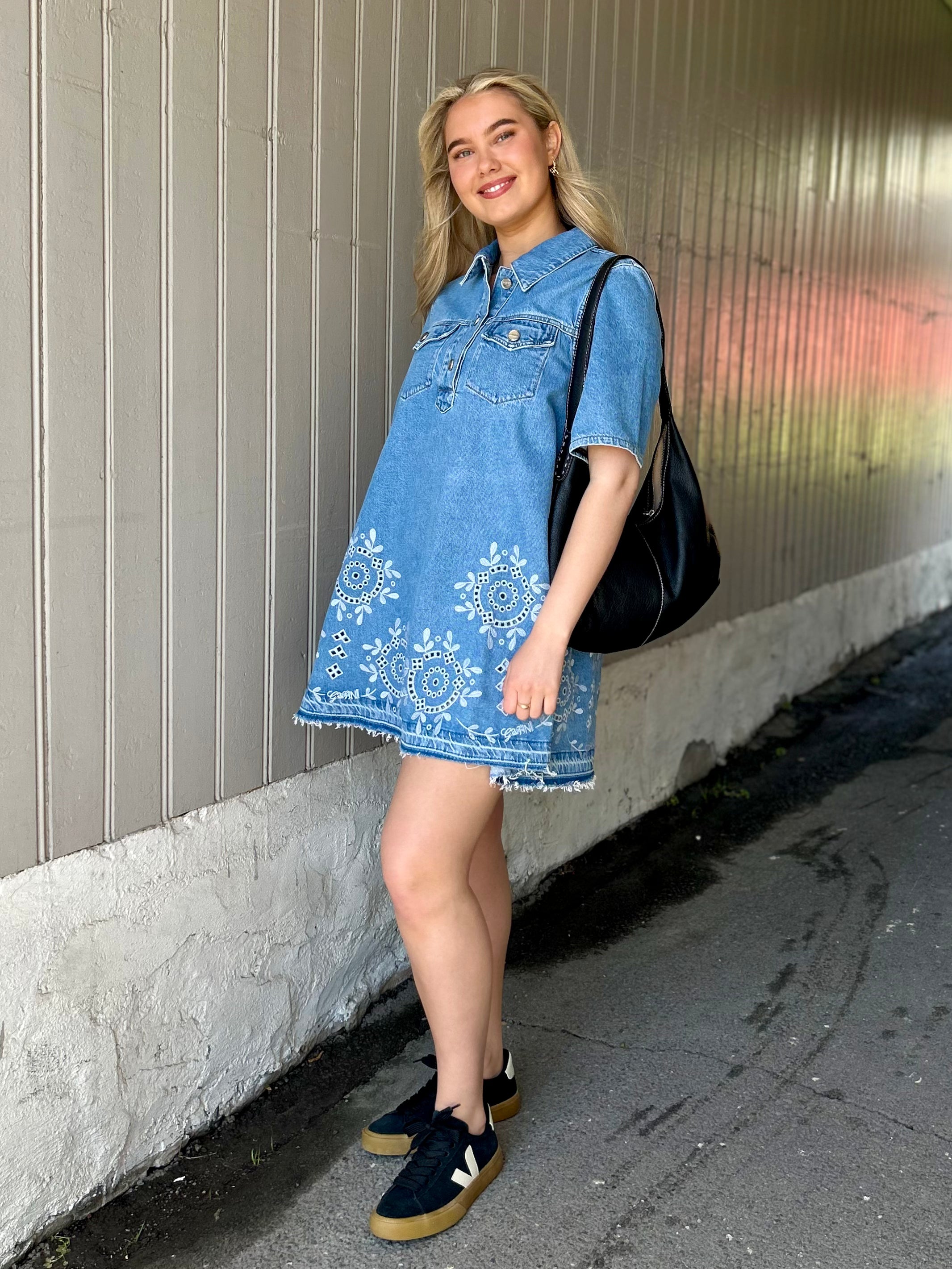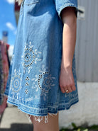 Broderie Anglaise Denim Mini Dress Light Blue Stone