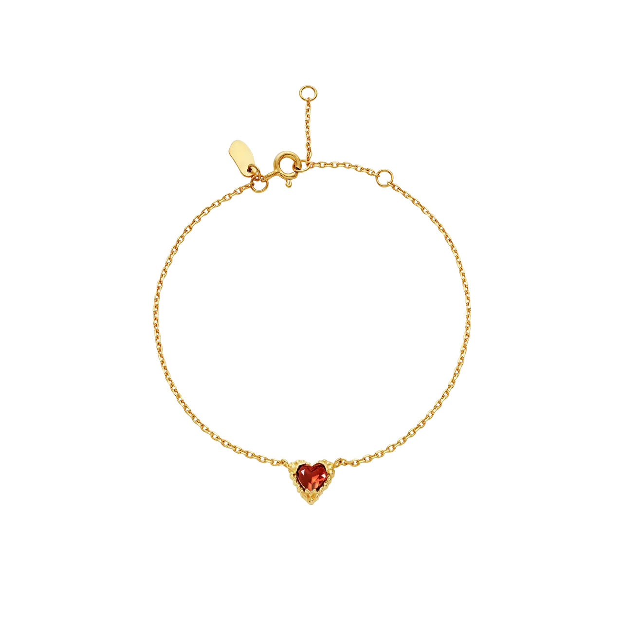 Amore Bracelet fra Maanesten. Et armbånd som minner deg på å holde fast ved kjærligheten. Den hjerteformede rosa granaten symboliserer varme og medfølelse. Dette er et smykke som lar kjærligheten blomstre.