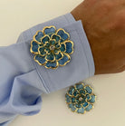 Flower Button Cover Blue fra Sticky Bestie gir antrekket ditt et elegant løft med klassiske blomsterdetaljer i gjennomsiktig blå emalje og gyllent metall. Dekorene festes enkelt uten søm ved å klipses over vanlige knapper, og passer perfekt til både skjorter, bluser og jakker. Ideell til alt fra bryllup og formelle antrekk til hverdagsbruk når du ønsker en sofistikert touch. Selges enkeltvis.