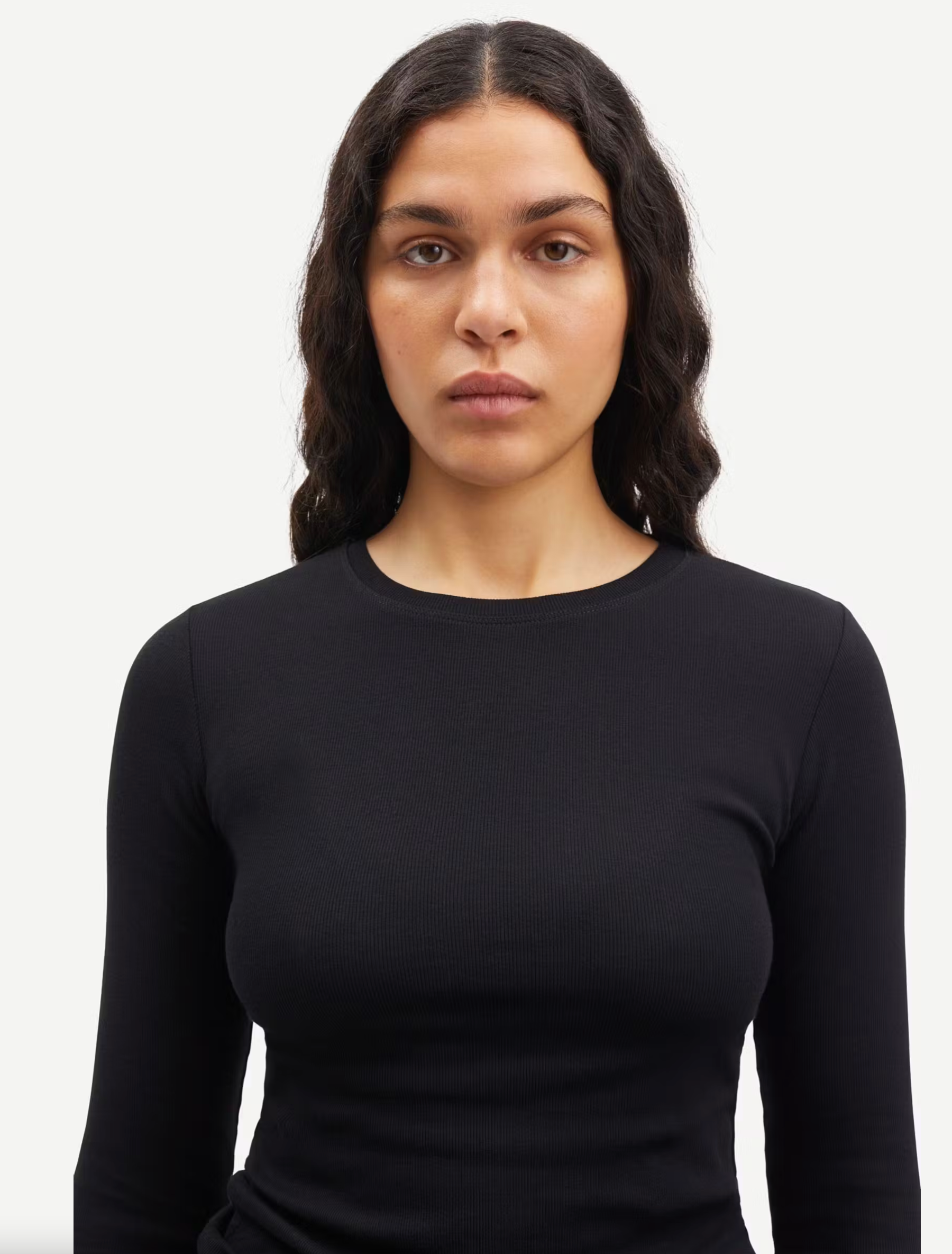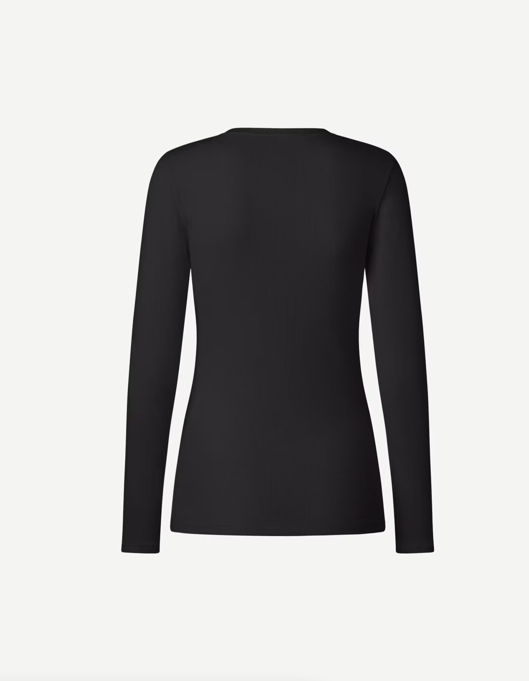 Alexa LS Top fra Samsøe Samsøe er en enkel langermet genser i smal fasong. Genseren er laget av et behagelig bomullsstoff.