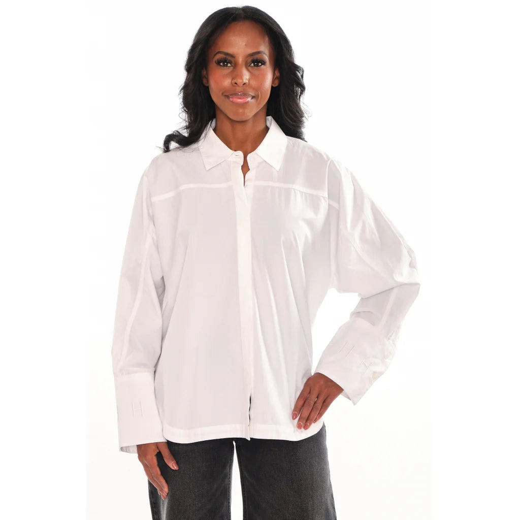 Senna Shirt fra Hést er en stilfull oversized skjorte laget av 100 % bomullspoplin. Designet har subtile H-broderier på mansjettene og nederst bak. En avslappet skjorte som kombinerer tidløs eleganse med moderne detaljer, perfekt både til hverdags og mer oppkledde anledninger.