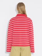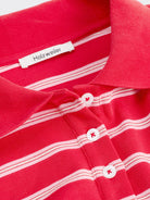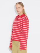 poloskjorte med avslappet passform som har blitt gjenskapt for den nye sesongen i en dristig rød stripe og krever din oppmerksomhet. Sunny Striped Poloskjorten er laget av pustende, åpenstrikket bomull, og lover komfort i varmt vær, men kan også styles for kjøligere klima. Denne klassikeren er ferdig med klokkeermer og en klassisk polokrage med knapper. Finnes også i en himmelblå fargekombinasjon.