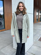 Den elegante draperingen gjør jakken lett å style, mens underarmsventiler og en skjult ventilasjonsåpning i ryggen gir økt pusteevne og komfort. Long Jacket er laget av Rains’ signatur PU-materiale med sveisede sømmer, noe som gir en lett og myk finish.