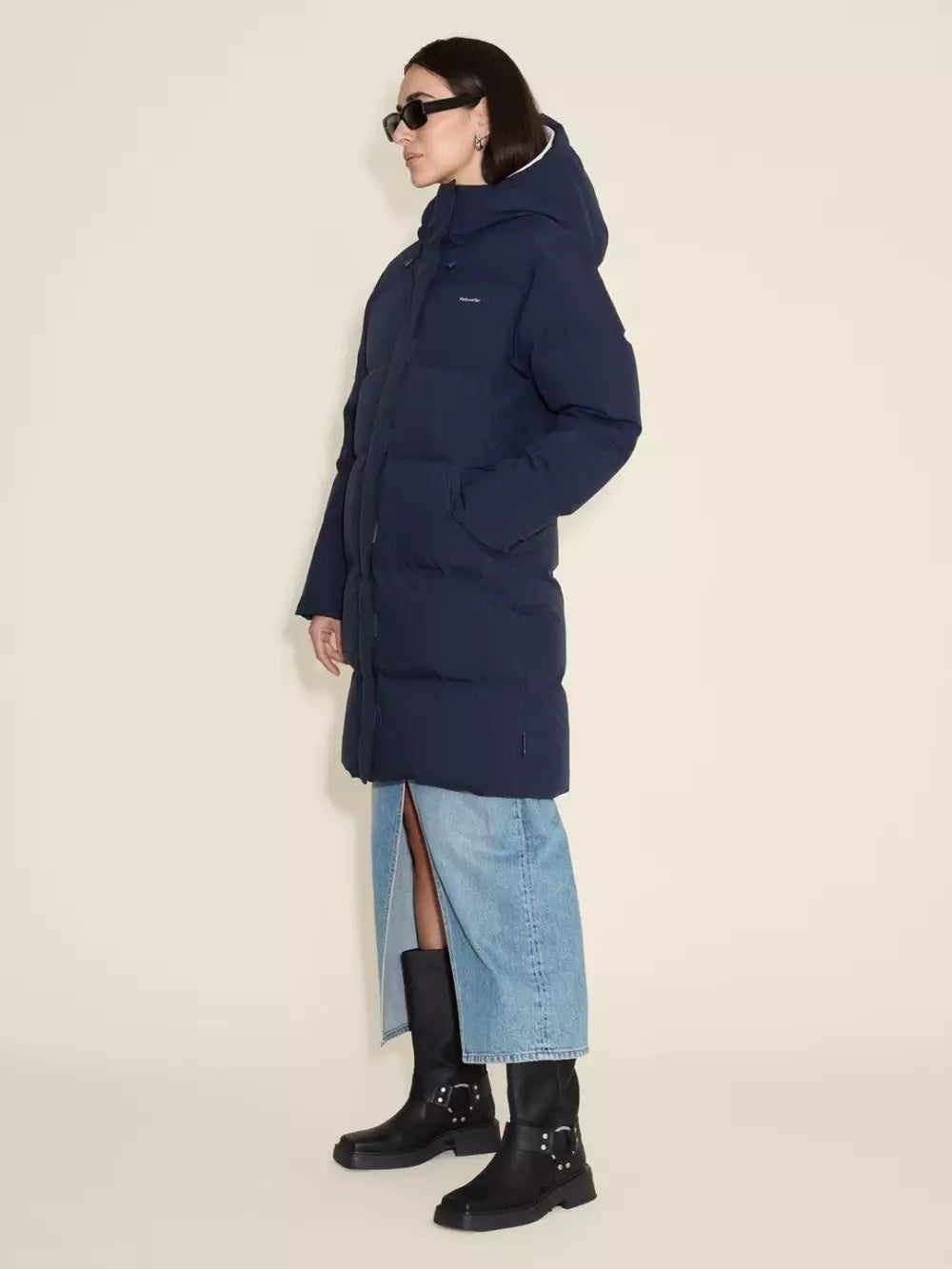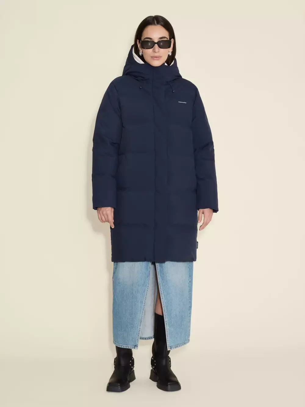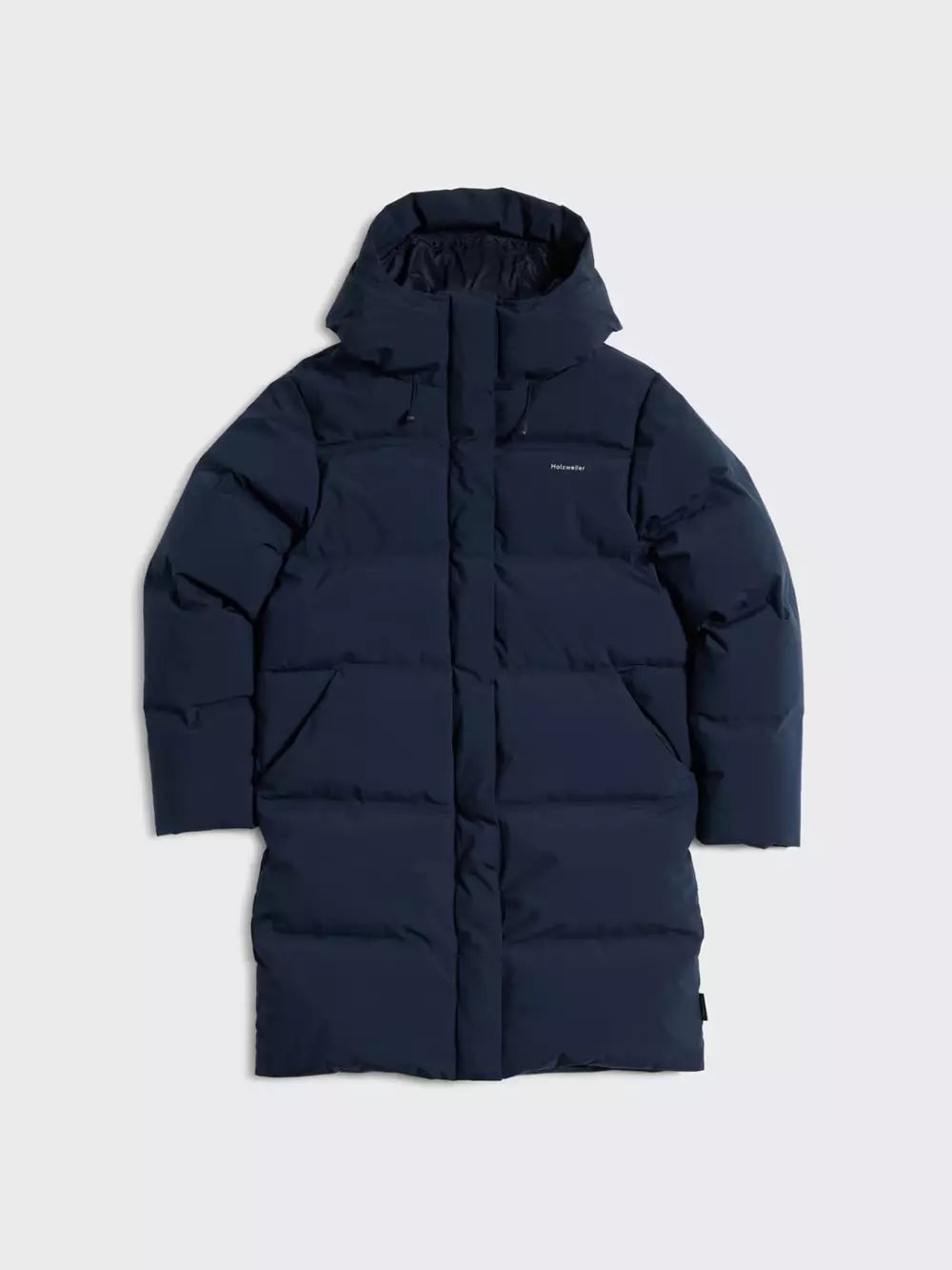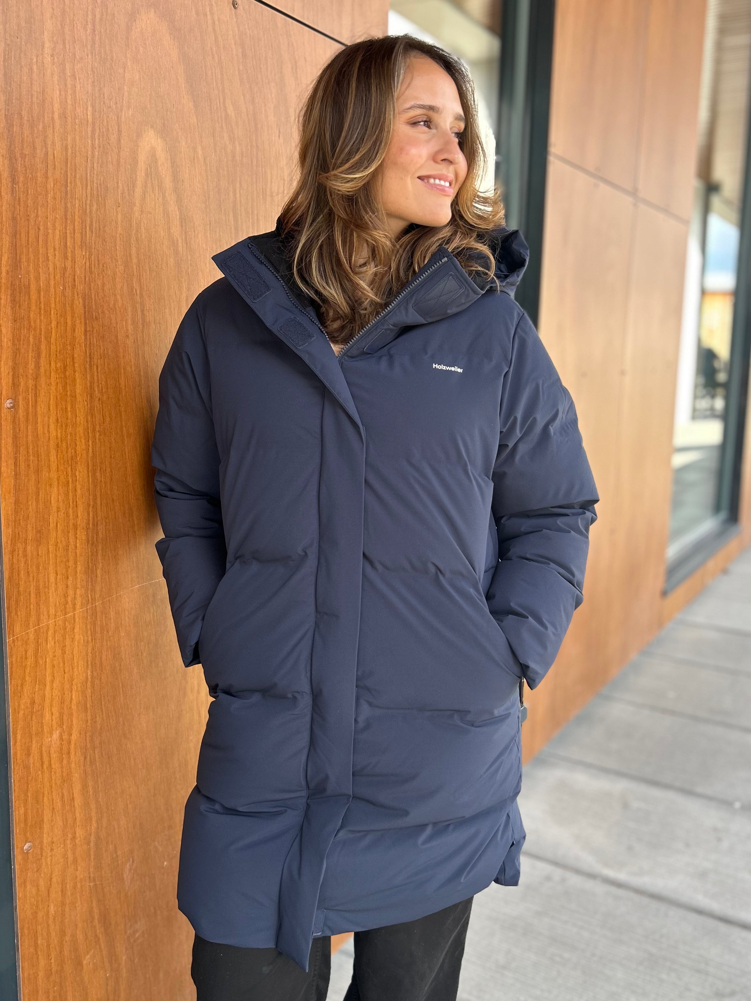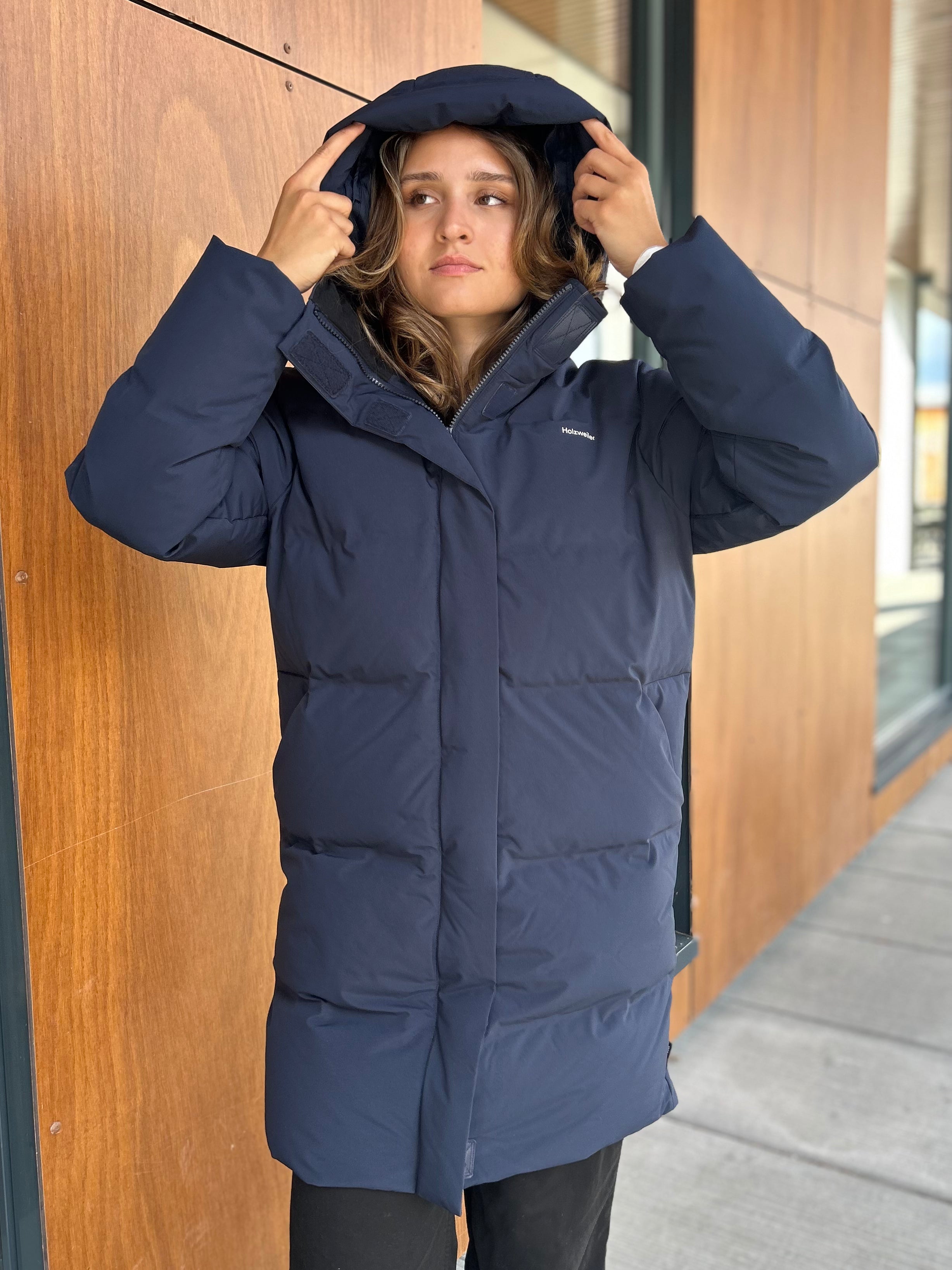 Loen Down Jacket fra Holzweiler er en varm og funksjonell vinterjakke med rett, lang passform som holder deg komfortabel ned til -15 grader. Den har en kraftig krage, avtagbar hette med snøring og praktiske lommer i sidene. Jakken lukkes med både glidelås og borrelås foran, og har en innvendig lomme for ekstra oppbevaring.