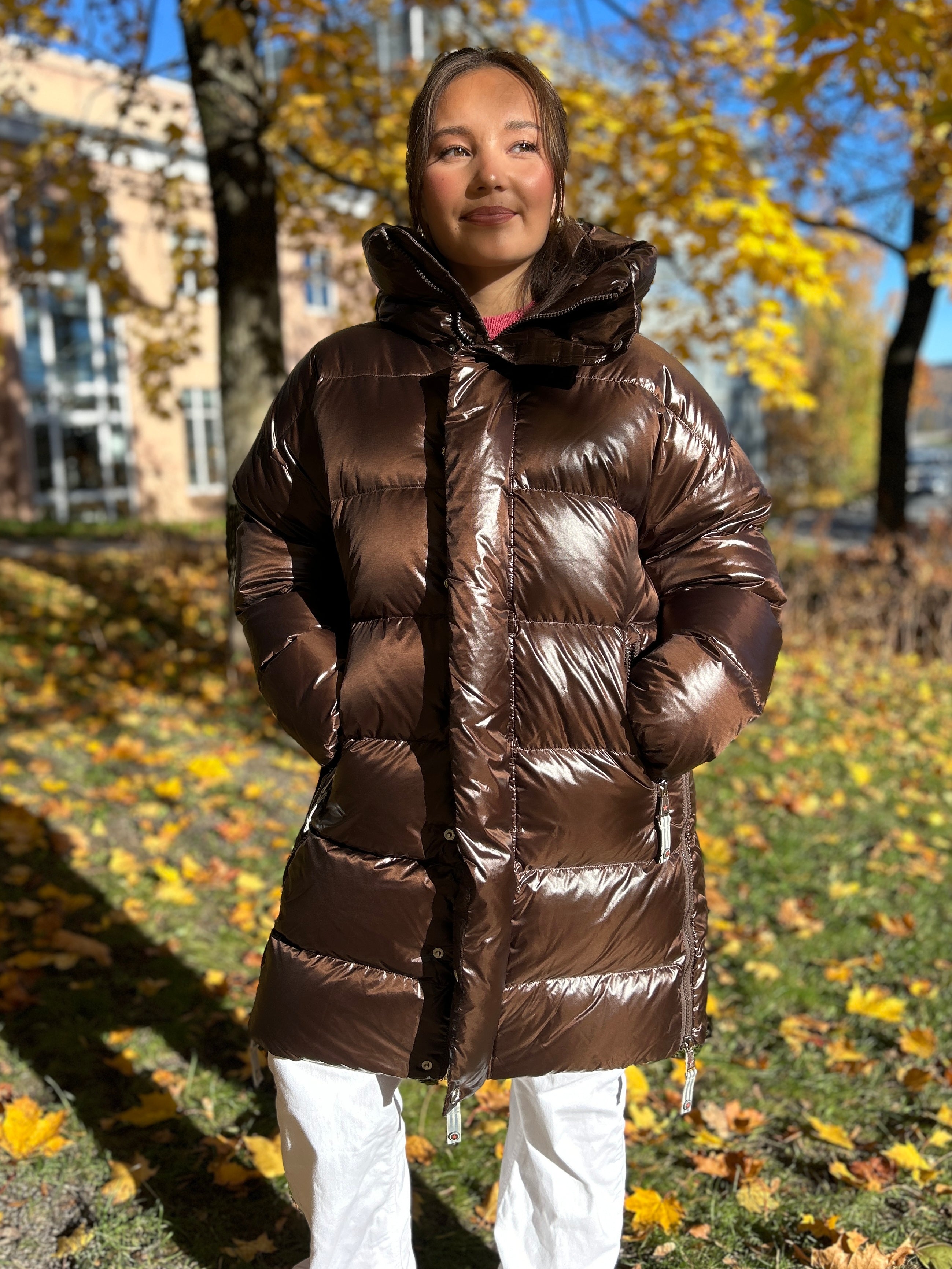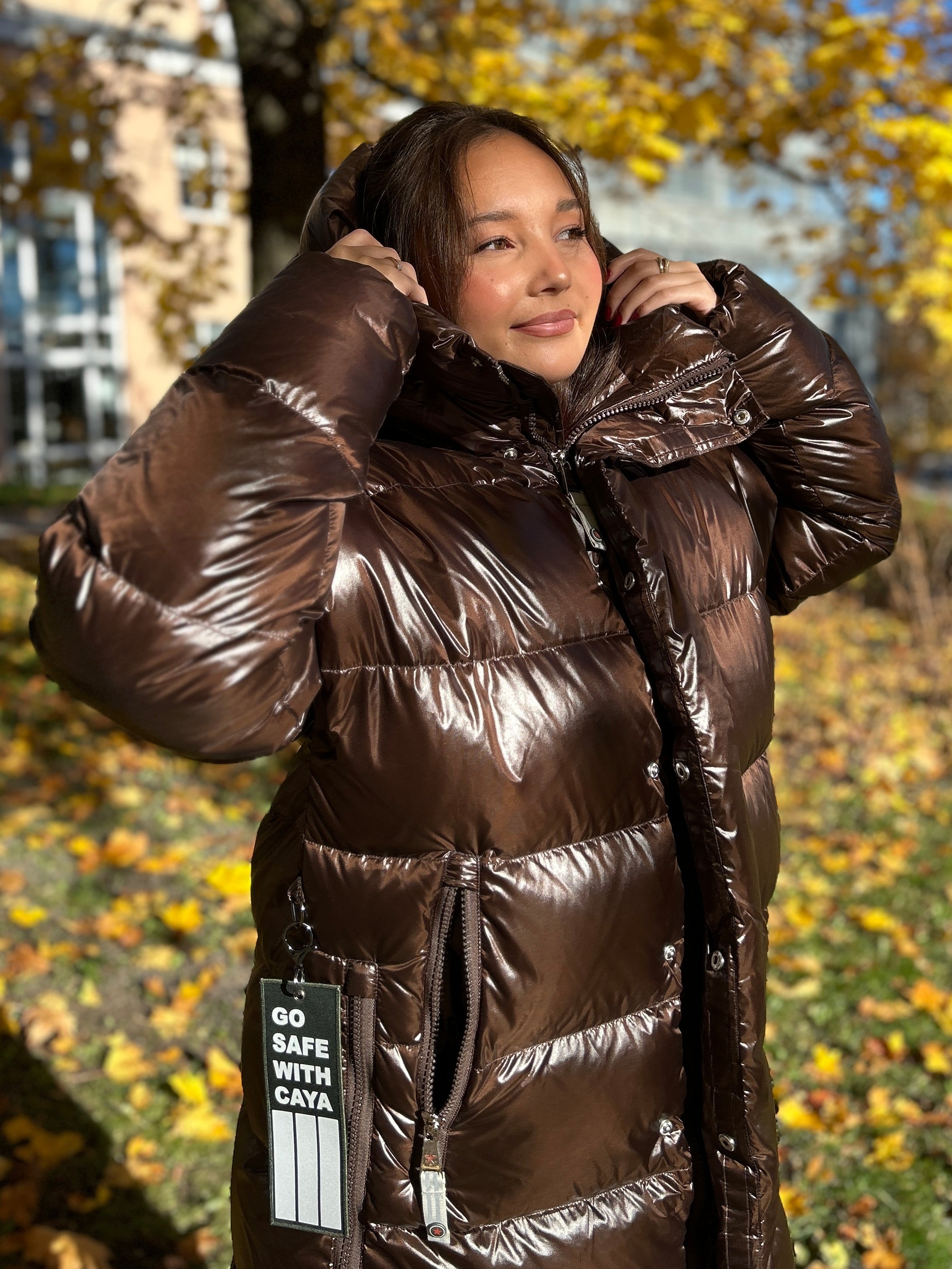 Ginny fra C.A.Y.A. (Come As You Are) er en romslig dunjakke. Ginny er en dunjakken som er lett i materiale og har splitt i sidene med glidelås for justerbar passform. I front har jakken glidelås og knepping med romslig hette og praktiske remmer på innsiden. Den har kule detaljer og holder deg varm hele vinteren.
