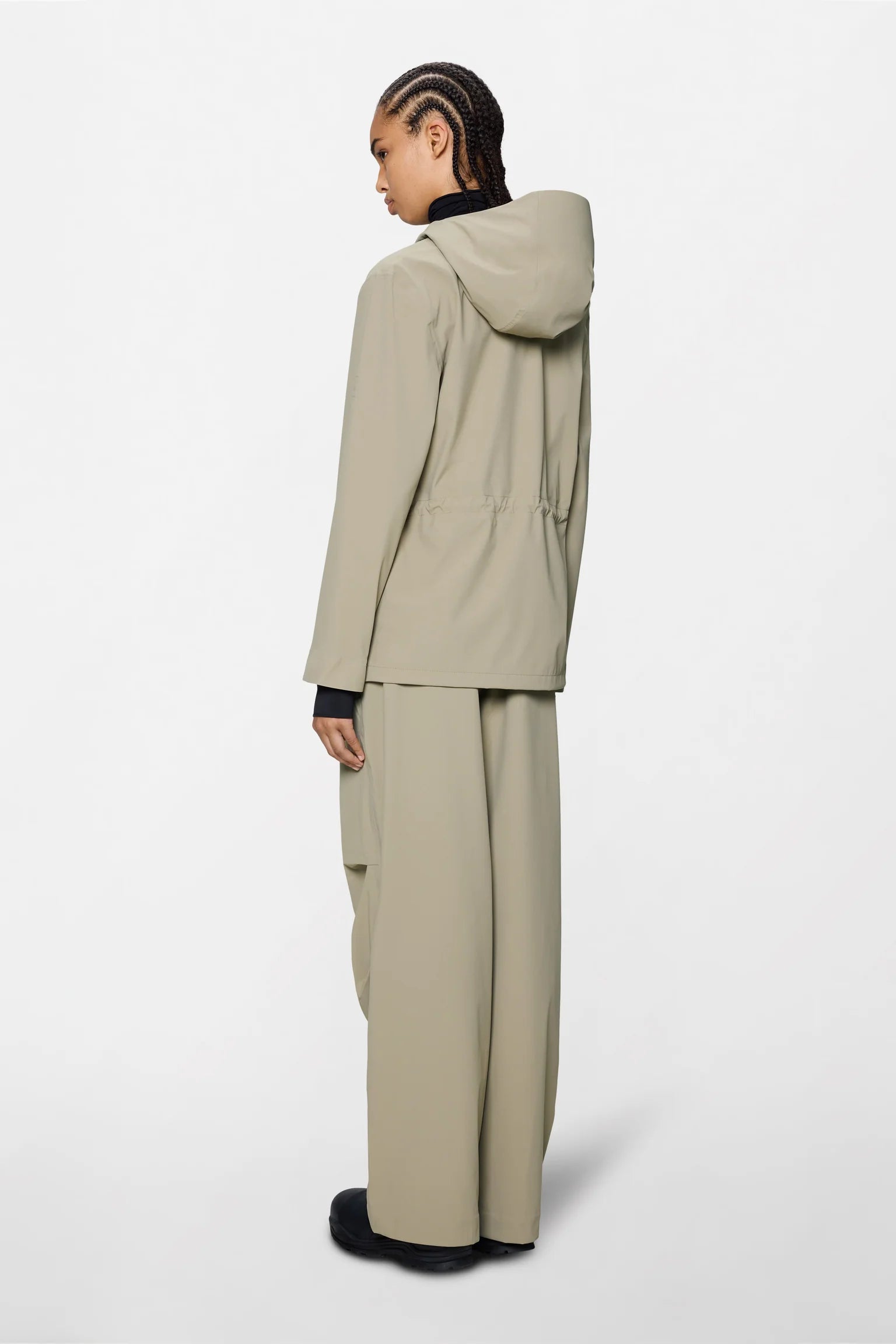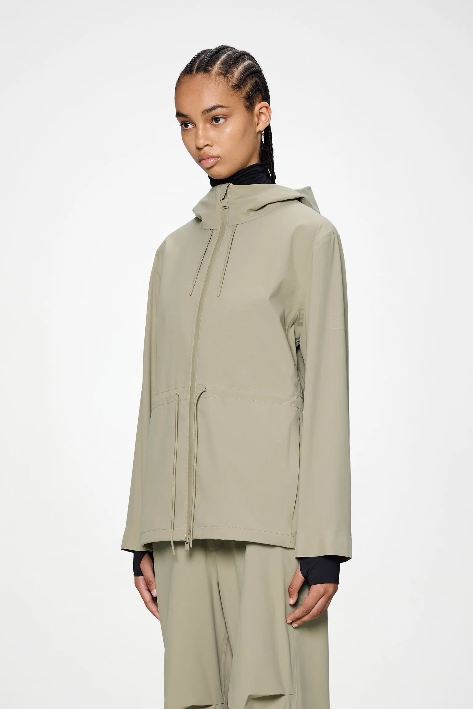Suva Hardshell String W Jacket fra Rains kombinerer høy funksjonalitet med en livsstilsteknisk estetikk. Designet er vanntett med snordetaljer. Suva Hardshell String W-jakken har en vanntett, belagt glidelåslukking og en hette med snøring. Kvaliteten har mekanisk stretch, noe som gjør denne jakken til det perfekte byplagget for pendling til fots eller på sykkel. Denne jakken er designet med sidelommer med glidelåslukking og stormmansjetter med teknisk jersey inni. En gummiert merkedetalj gir et hint av kontrast til det rene utseendet. Designet fullføres med snøringjusteringer i midjen og falden. Suva Hardshell String W-jakken er laget av mykt og lett 3L-stoff med teipede sømmer og en matt overflate.