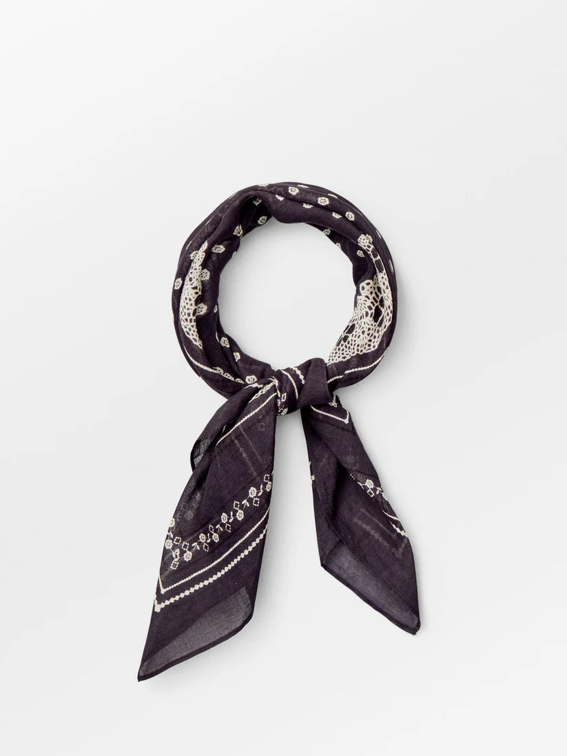 Lacia Cotta Scarf fra Becksöndergaard er et stilfullt firkantet skjerf laget av 100 % bomull. Det måler 55 x 55 cm og er det perfekte tilbehøret for å tilføre både varme og eleganse til antrekket ditt. Skjerfet har et feminint print med mange detaljer som gjør det til et blikkfang uansett hvordan du bruker det. Det kan bæres rundt halsen, som belte eller festes på vesken for en ekstra stilfull touch.
