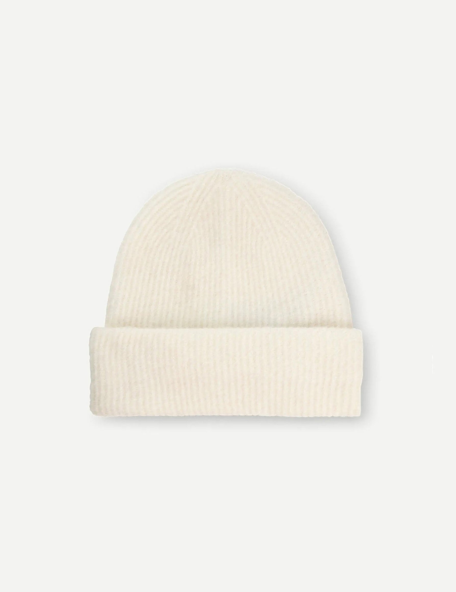 Nor Hat Clear Cream fra Samsøe Samsøe er en myk og varm strikkelue laget i en luksuriøs blanding av ull, alpakka og resirkulert polyester. Den har et minimalistisk design og er RWS-sertifisert, som sikrer god dyrevelferd i ullproduksjonen. Luen gir både komfort og stil på kalde vinterdager og er et perfekt tilbehør til ethvert antrekk.
