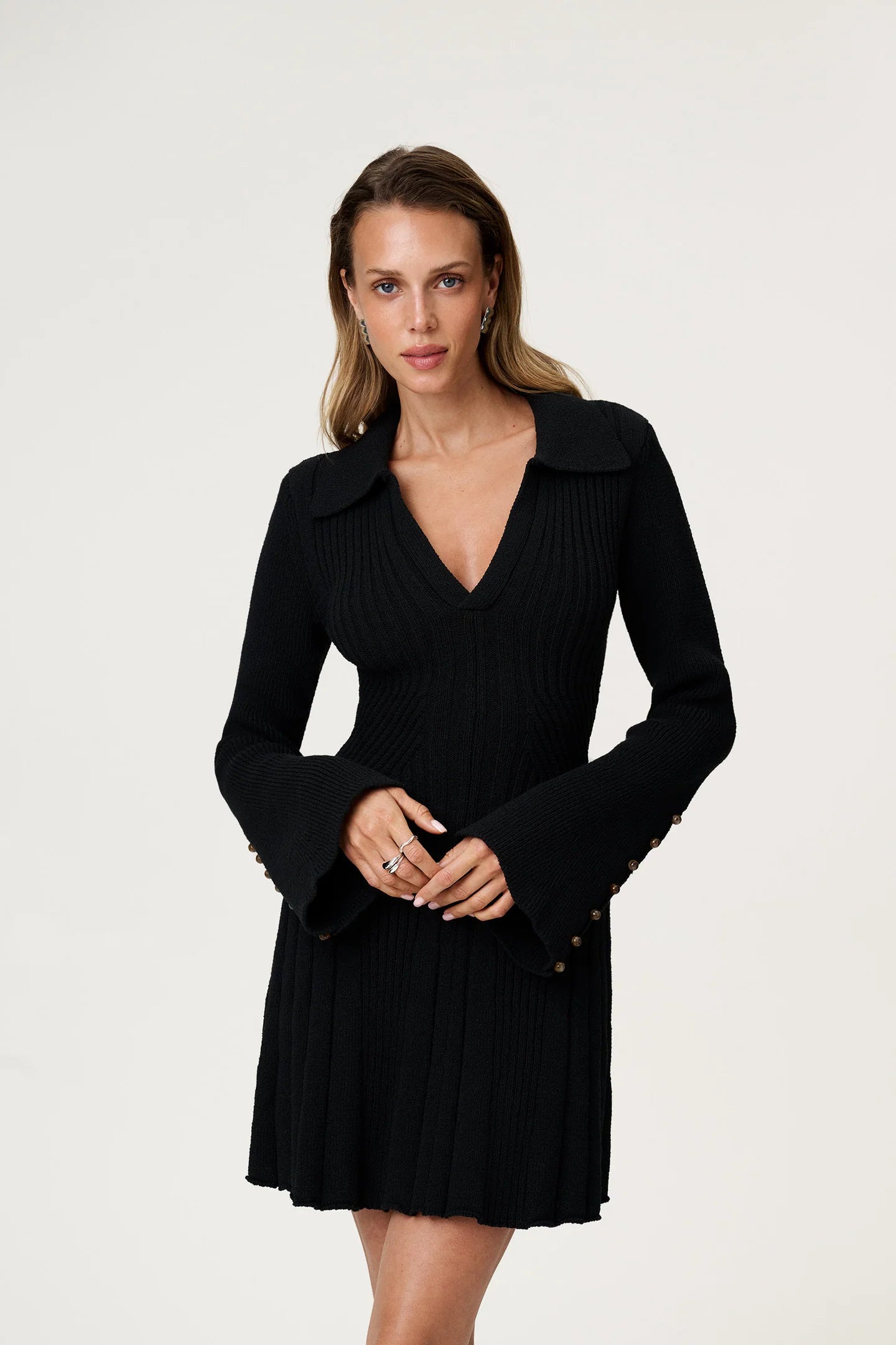 Seersucker Corduroy V-neck Mini Dress Chicory Coffee