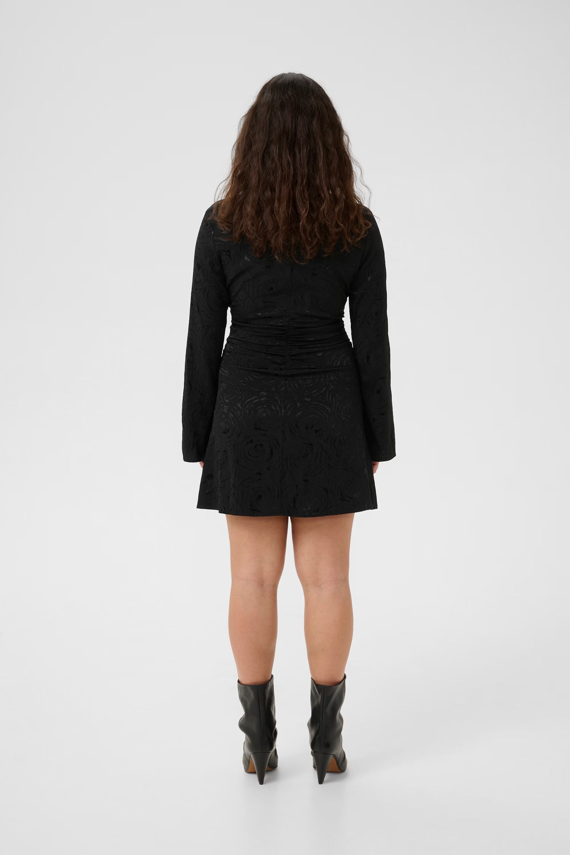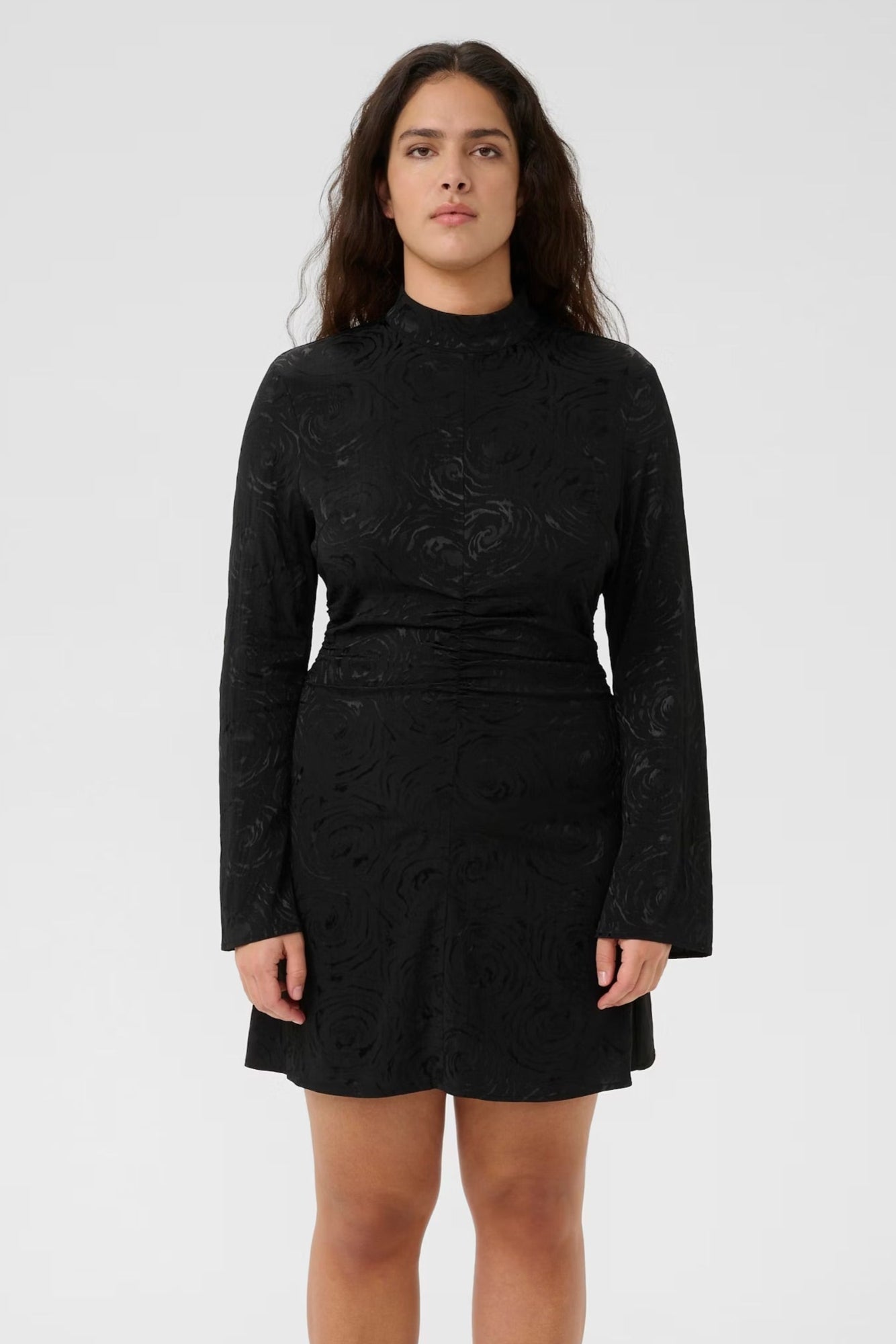 GZRosia Short Dress Black er en minikjole fra Gestuz med høy hals for kvinner, med tettsittende passform, lange ermer og rynkede detaljer i midjen. Kjolen er designet for flere anledninger og et komfortabelt plagg som kombinerer stil med en flatterende silhuett og tidløs eleganse.