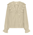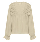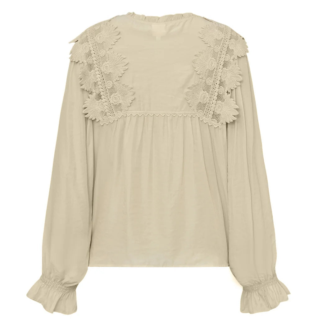 BirkaGO Blouse Creme fra Gossia er en vakker bluse med blondedetaljer på bærestykket og nedover ryggen. Den delikate blondestrukturen gir et feminint og elegant uttrykk til en ellers tidløs og enkel stil. Blusen er perfekt å style med jeans og støvler for et avslappet, men feminint hverdagsantrekk, eller med skjørt og hæler for en mer elegant og festlig look.