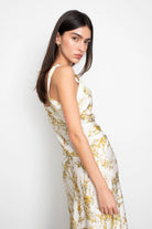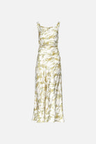 Anna Dress fra Camilla Pihl er en lang, feminin stroppekjole med delikat volum i skjørtet og en fossefallsutringning. Den har glidelås i sidesømmen og gir en elegant og tidløs silhuett.