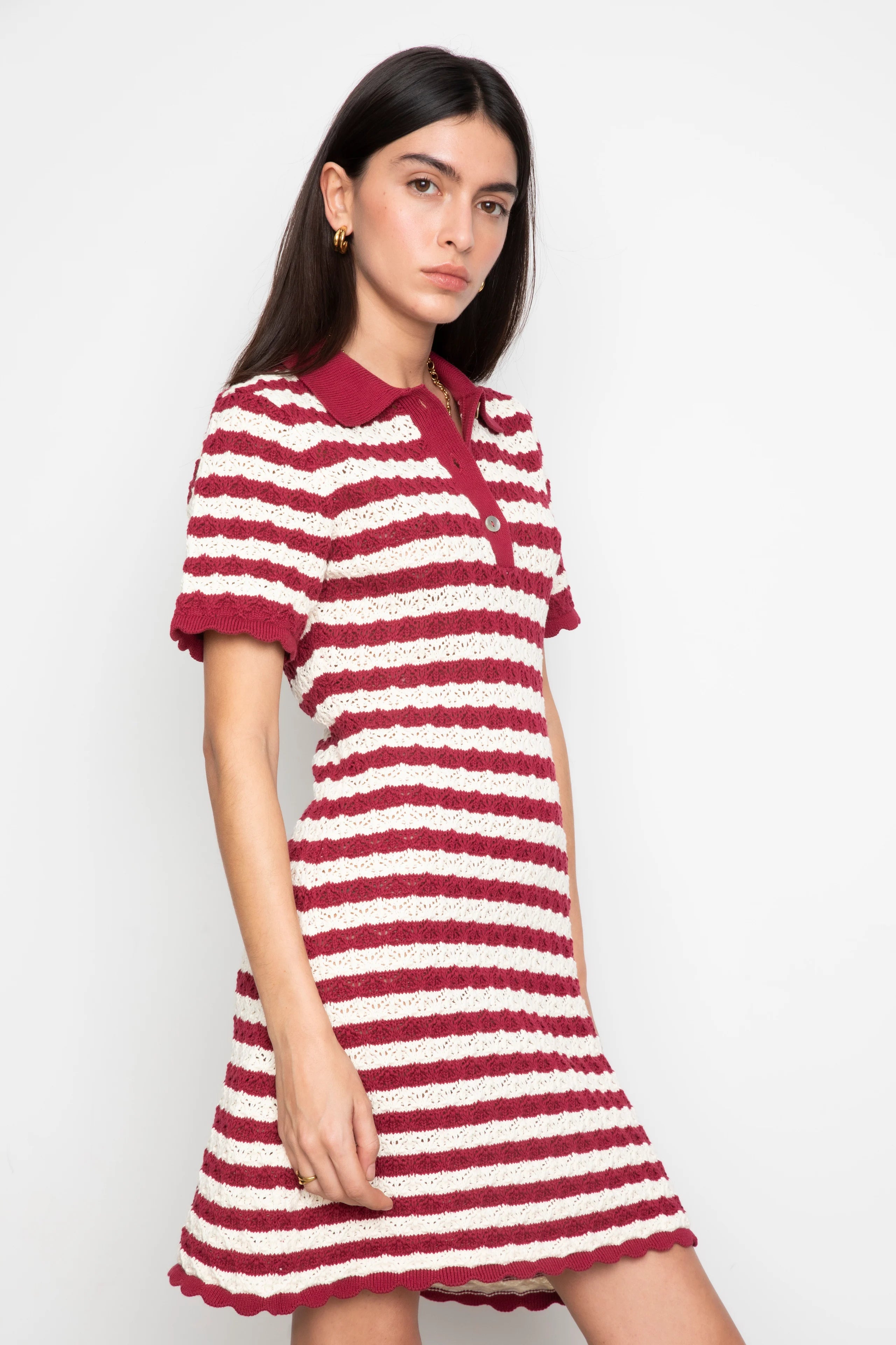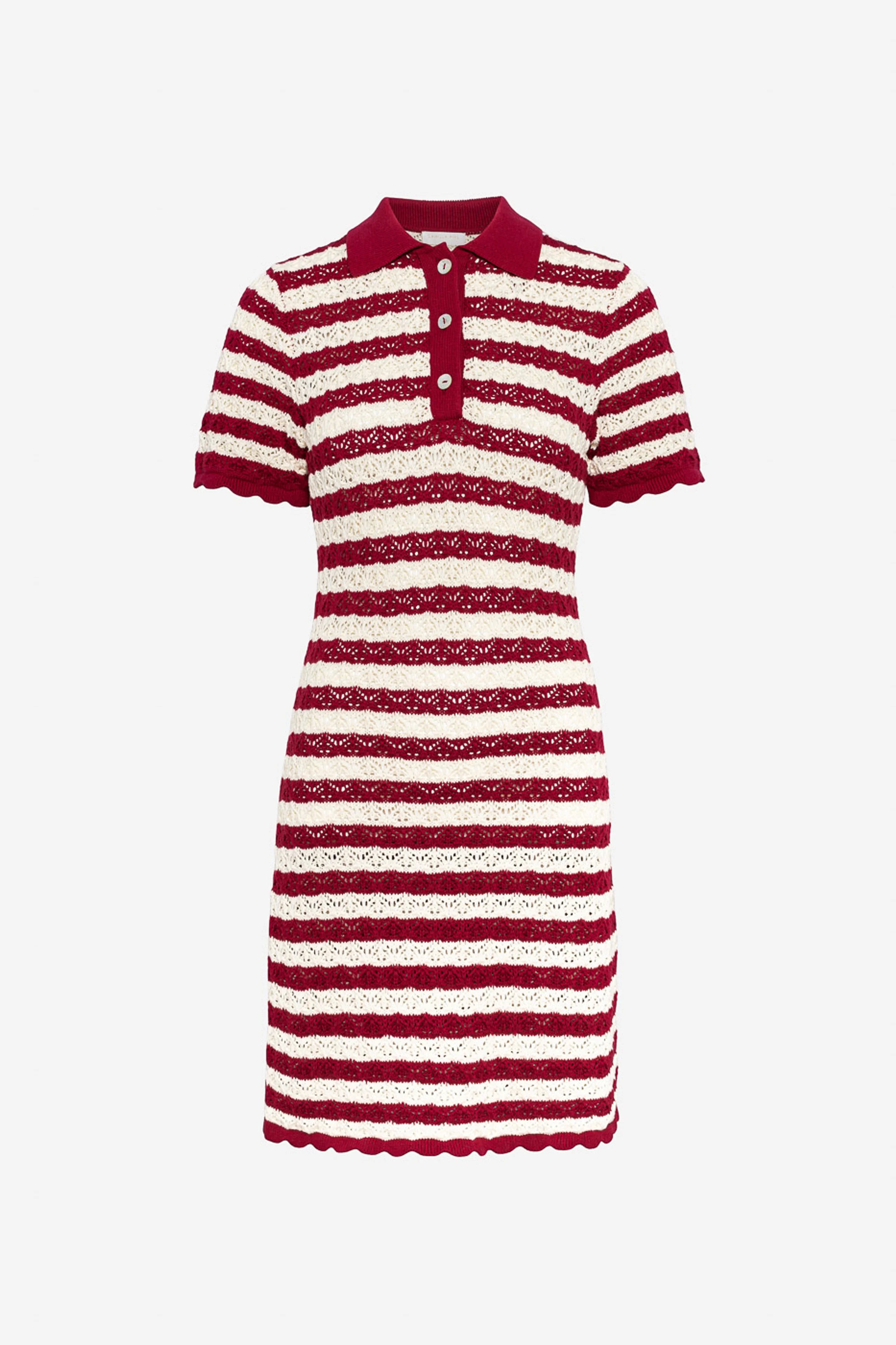 Emery Dress fra Camilla Pihl er laget av bomull i vårt sesongbaserte heklede strikkemønster. Den er designet som en kortermet poloskjorte med en kort lengde, og har tre knappelukkinger langs stolpen foran for et polert og moderne utseende.