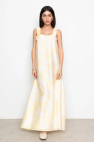 Zaha Dress fra Camilla Pihl er laget av en myk tencelblanding og har justerbare skulderstropper og et A-formet skjørt. Den har vårt delikate gule blomstertrykk og gir en lett og feminin silhuett som er perfekt for sesongen.