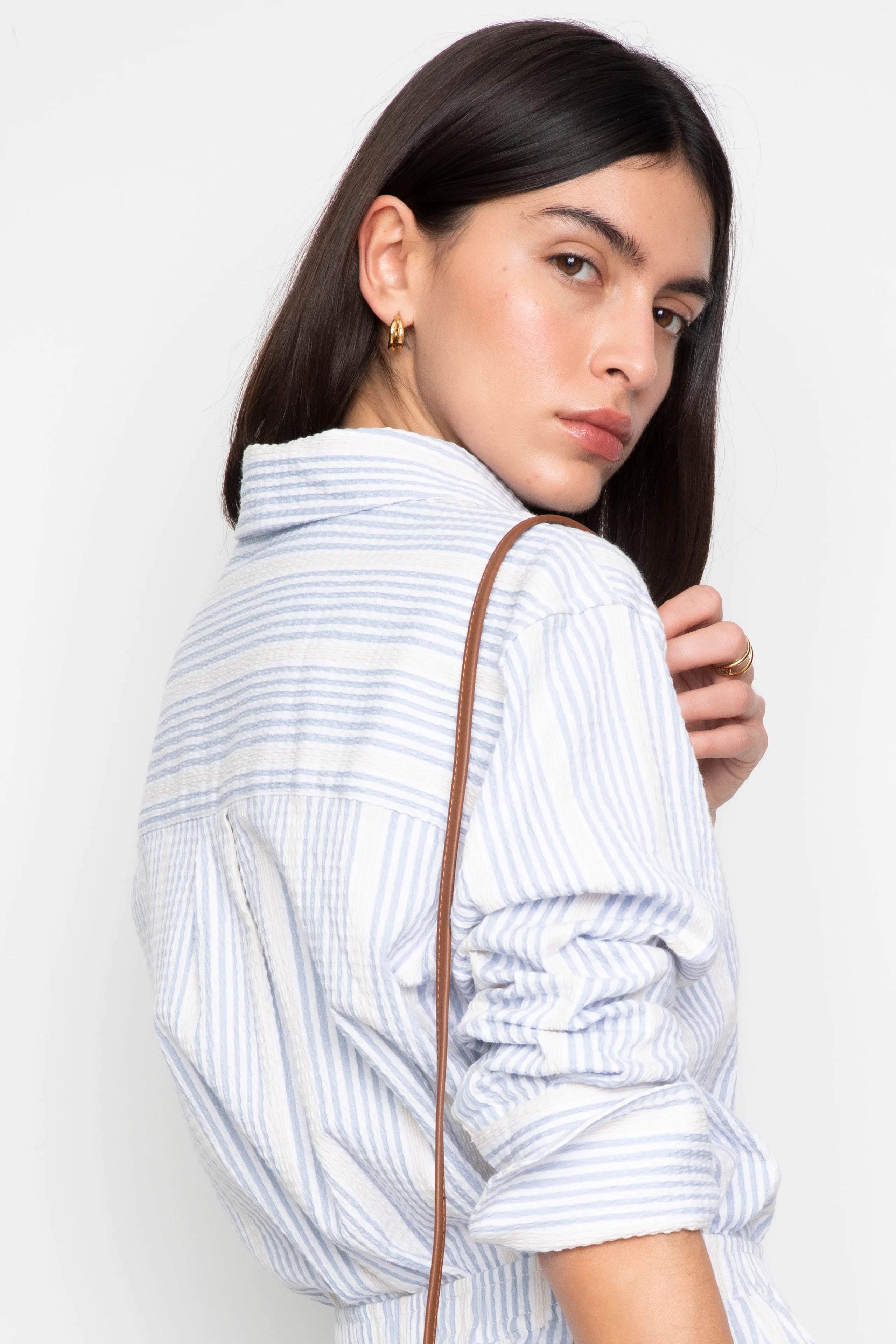 Bibi Crepe Shirt fra Camilla Pihl er en tidløs og klassisk modell laget av et nytt seersucker-stoff. Designet for en oversized passform med senkede skuldre og en vid silhuett.