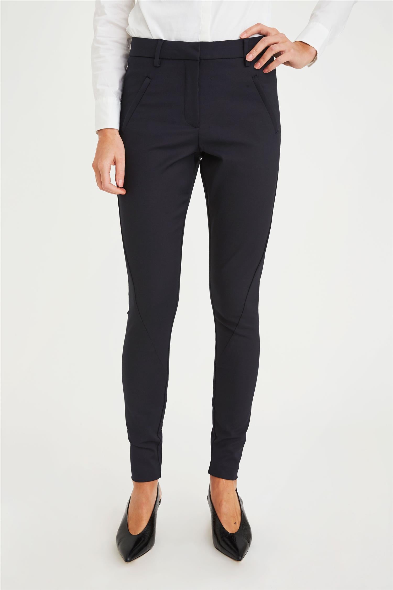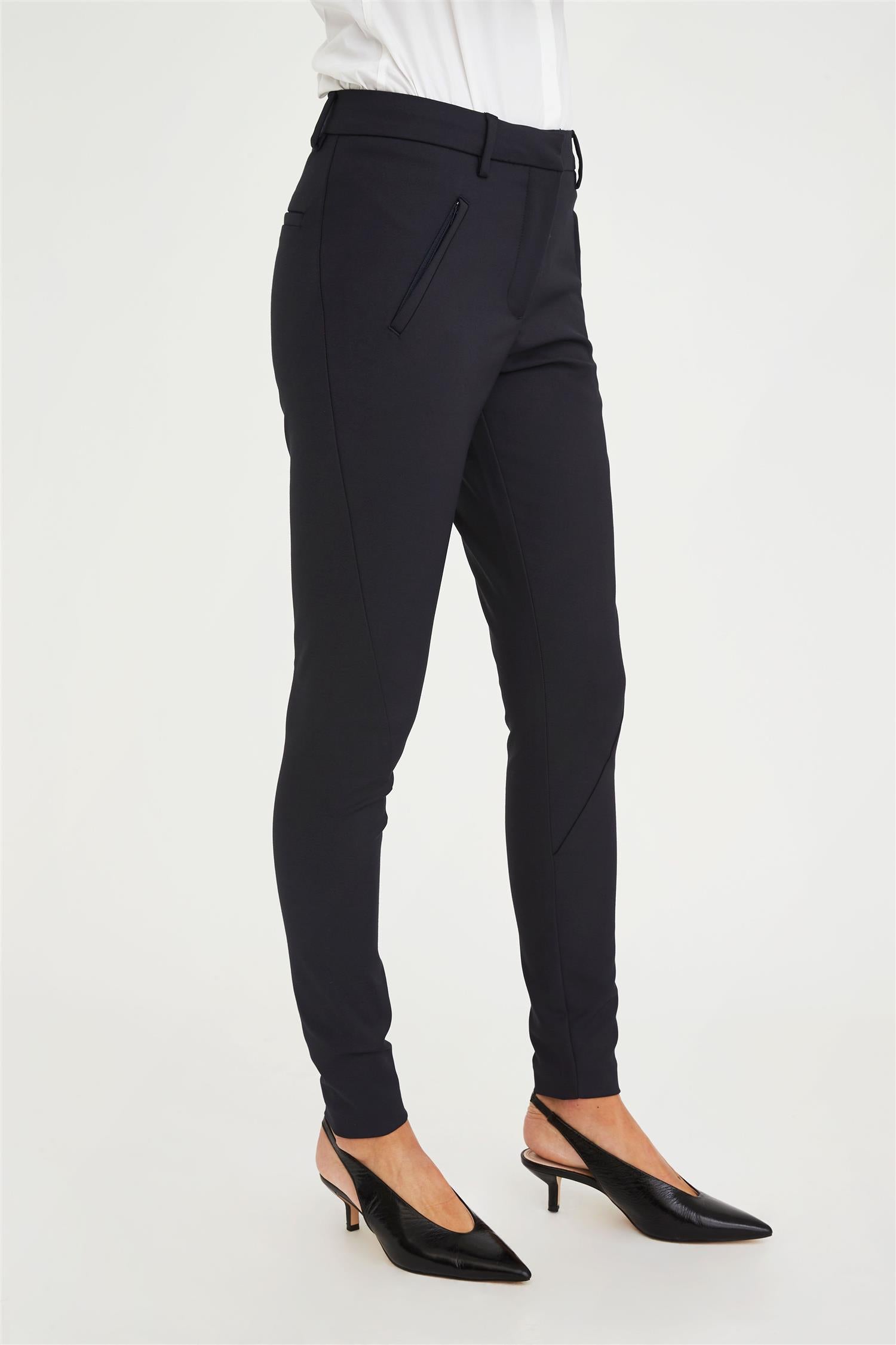 Dressbuksen Angelie fra Five Units er et nøkkelplagg i garderoben med sin smale fasong og flatterende kuttelinje som vikler seg rundt benet og fremhever den feminine silhuetten. Angelie er detaljert med passepoilerte lommer, skjult glidelåslukking i front og beltehemper i sitt medium høye liv – som skaper en moderne versjon av en tidløs klassiker.