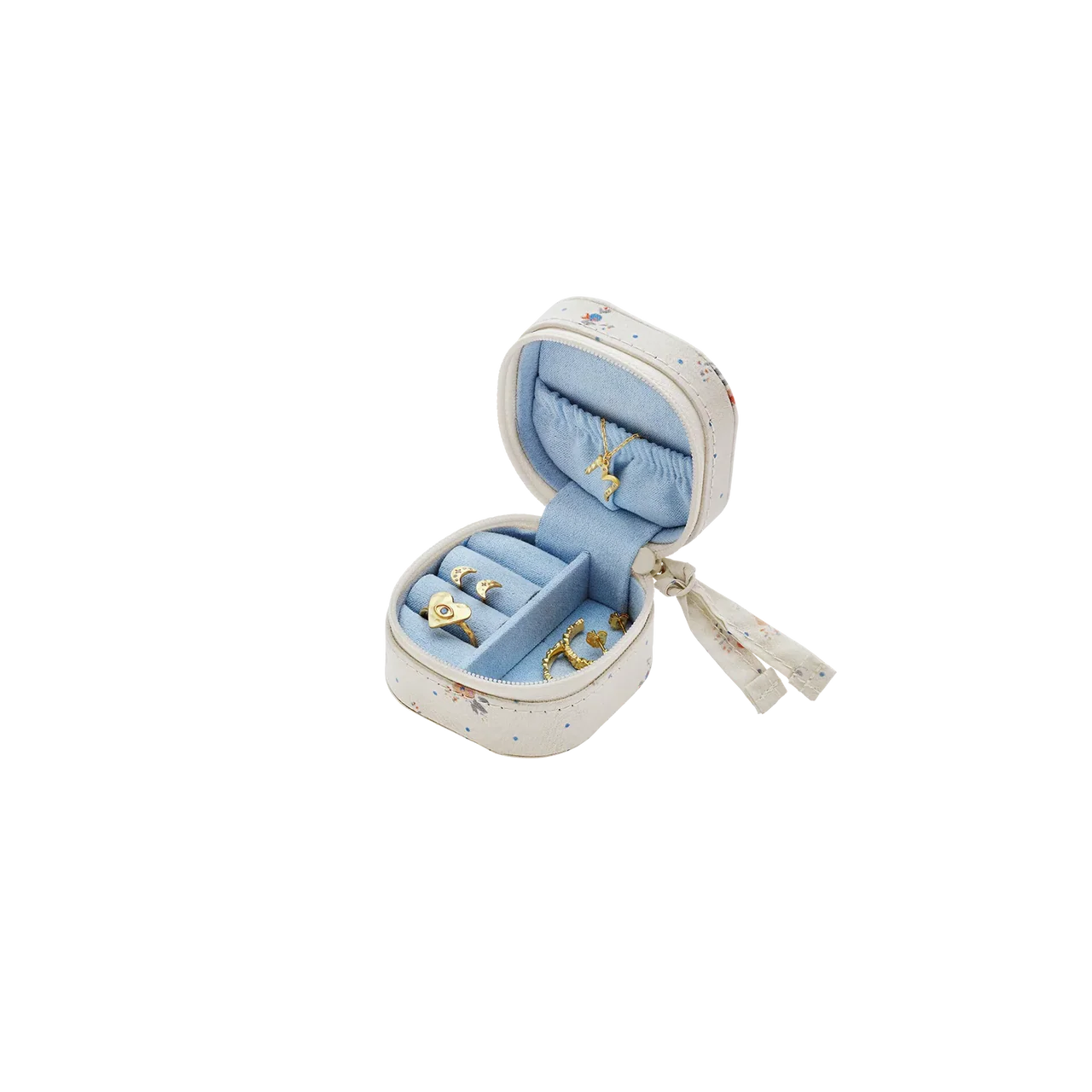 Alice Jewelry Box Sky Blue fra Maanesten er et søtt og kompakt smykkeskrin designet for å holde dine favoritter innen rekkevidde. Med et sjarmerende hjerte på lokket er denne lille esken perfekt til de minste skattene dine, både hjemme og på farten.