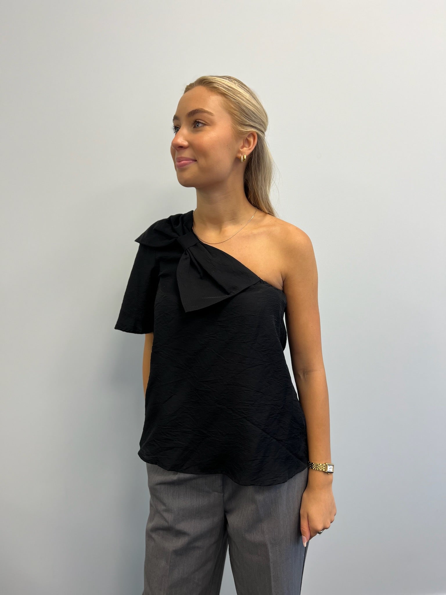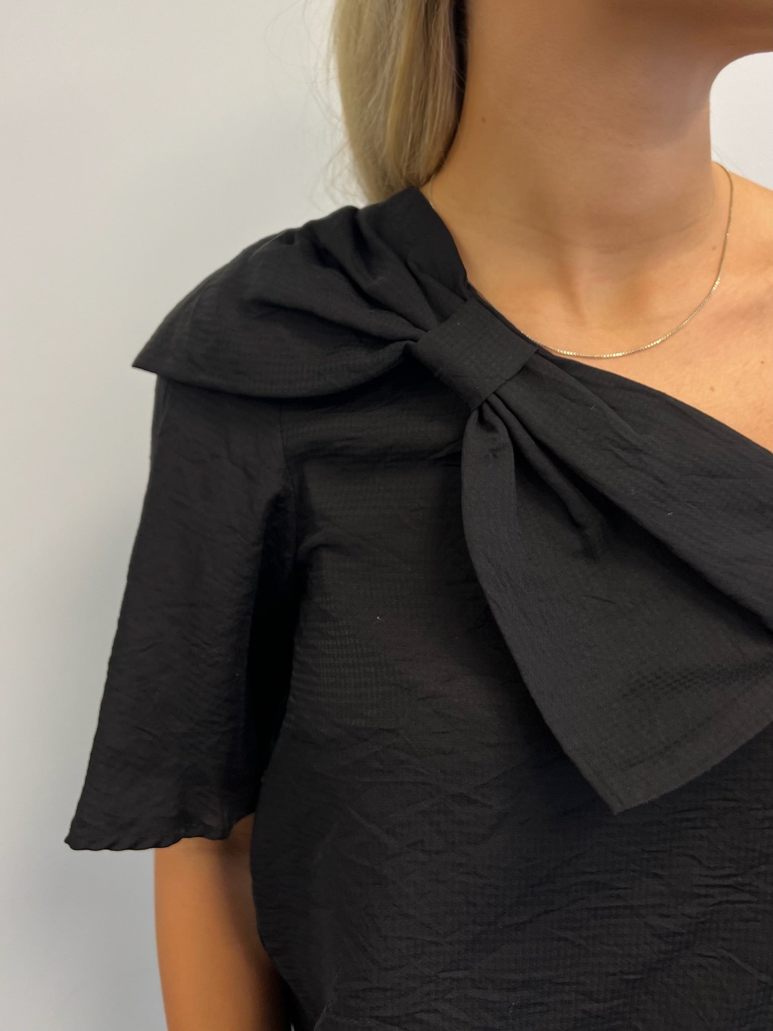 Rui-M Juliett er en sort offshoulder bluse fra Mbym med en nydelig sløyfedetalj. Passer perfekt for middager, sosiale sammenkomster og stilfulle hverdagsantrekk.