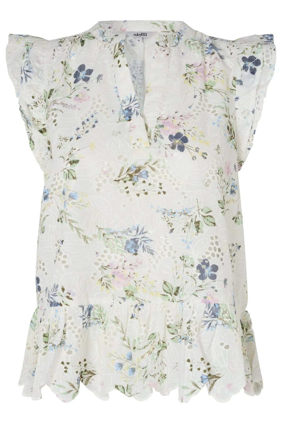 Sinnah-M Top T-shirt Florissa Print fra MbyM er en stilfull kortermet bluse med det unike Florissa Print, som tilfører et snev av eleganse til din garderobe. Denne blusen har en normal passform. Det vakre printet kombinert med et klassisk design gjør den egnet for både avslappede og mer formelle anledninger. Med sitt allsidige uttrykk kan den enkelt styles med forskjellige antrekk, noe som gjør den til et allsidig valg.
