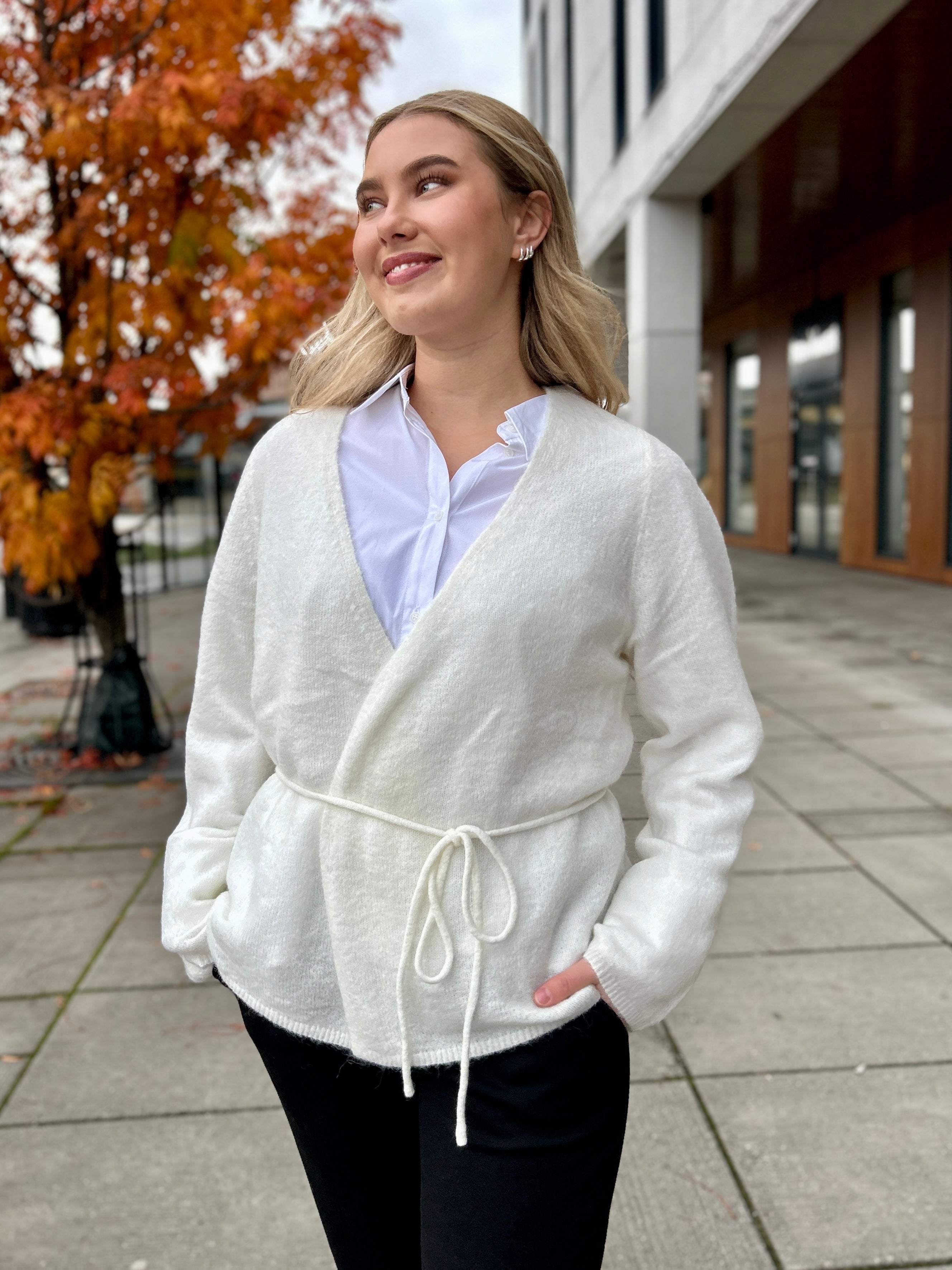 MSCHMiabelle Hope Wrap Egret er en myk og varm wrap-cardigan fra MSCH Copenhagen. Cardiganen er perfekt sammen med jeans eller en dressbukse.