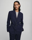Freylia Straight Blazer i fargen Mari Blue Mel fra MSCH Copenhagen er en klassisk blazer med rett passform. Den har enkeltspent lukking med knapper og et smalt belte i livet som gir en feminin silhuett.