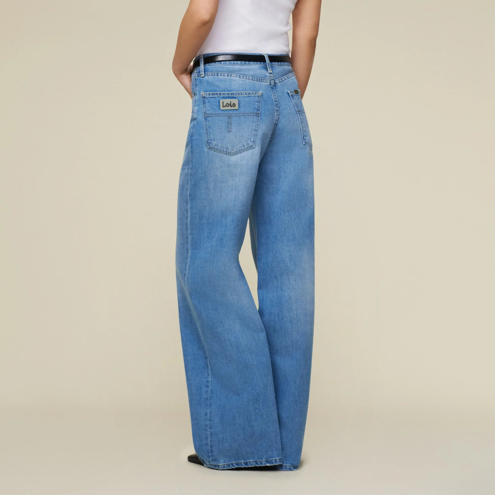 Skater Loose fra Lois Jeans er deres 90-tallsjeans med lav midje og vide ben. Kjøp vanlig størrelse for å oppnå lav midje og skaterben med lavt skritt - eller kjøp en mindre størrelse for høyere midje og tettere passform over hoftene.