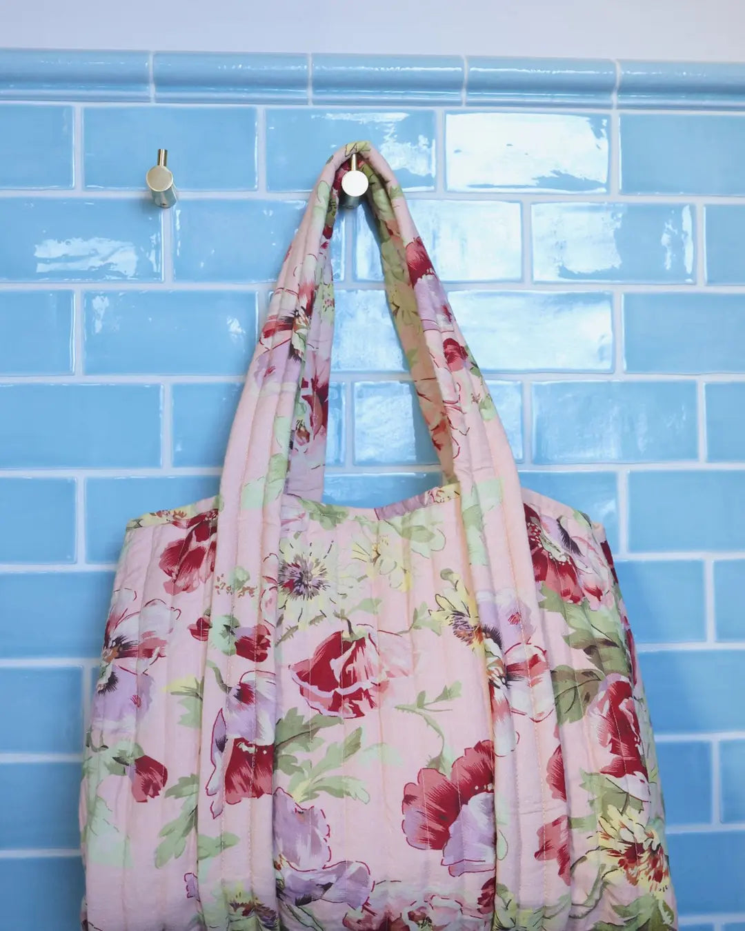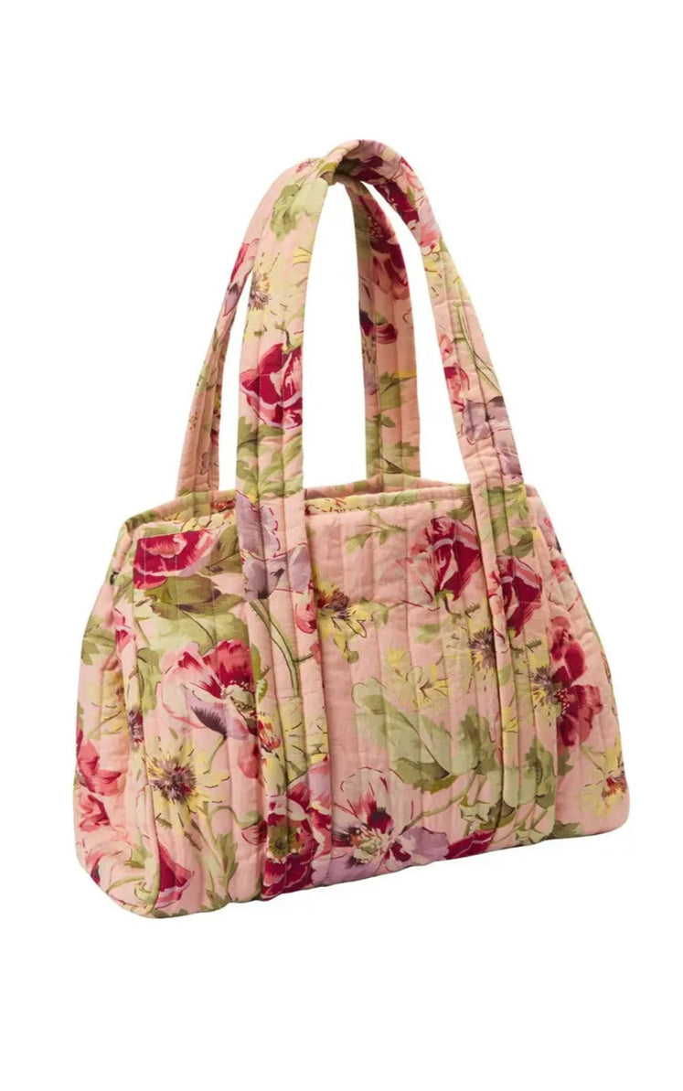 The Tote Bag fra byTiMo er laget i en myk og delikat GOTS-sertifisert bomulls- og linblanding, og prydet med vakre quiltedetaljer. Den kvadratiske fasongen gir vesken et moderne uttrykk samtidig som den rommer alt du trenger i hverdagen – fra jobbting til personlige eiendeler. Med sitt vintageinspirerte print og gjennomtenkte design kombinerer vesken funksjonalitet og stil uten kompromisser.