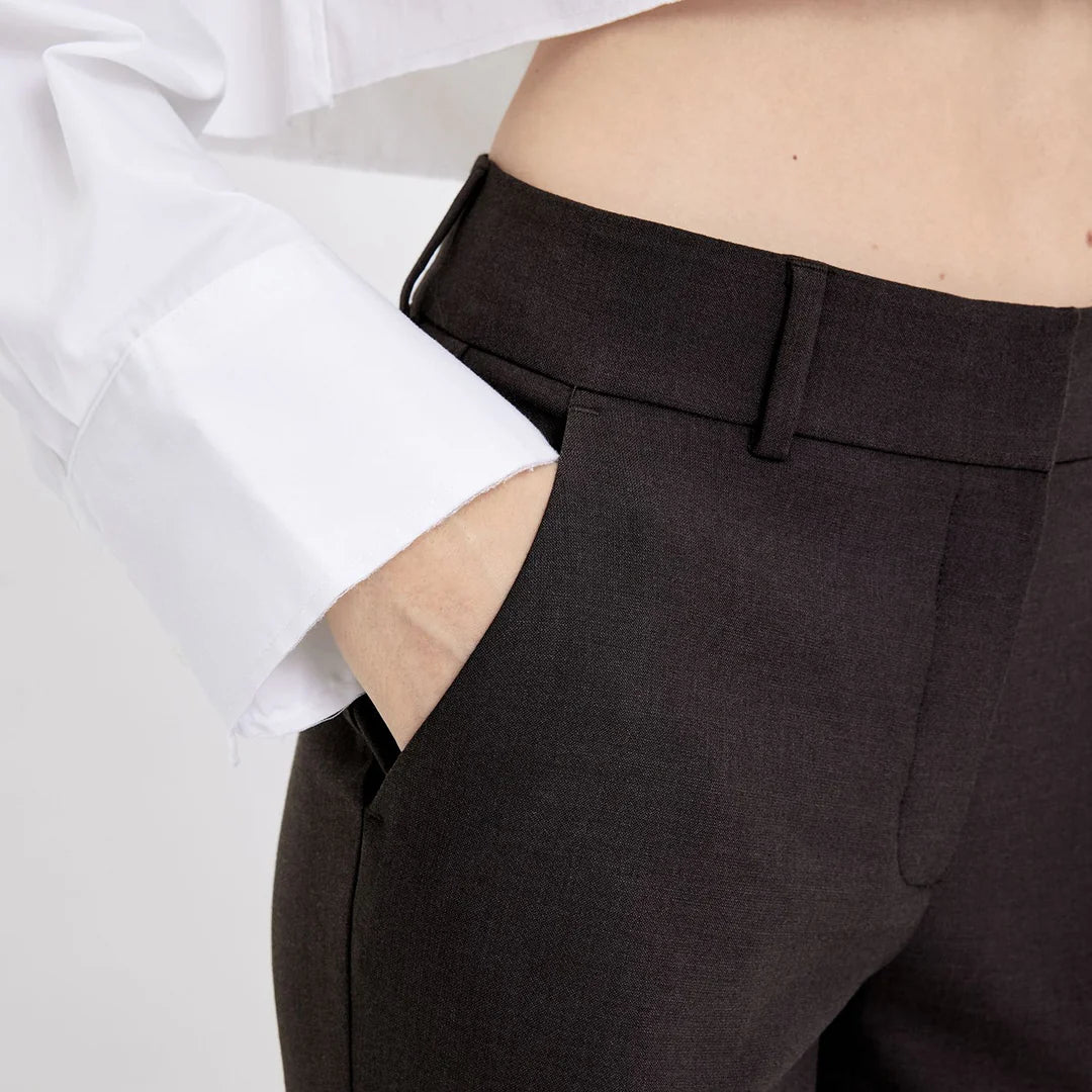 Clara fra Five Units er en klassisk dressbukse i utsvingt modell som både skaper og balanserer feminine former. Buksen er detaljert med legg, lommer i sidene, jukselommer bak, skjult glidelåslukking og beltehemper i livet. Perfekt til både jobb, hverdags og fest!