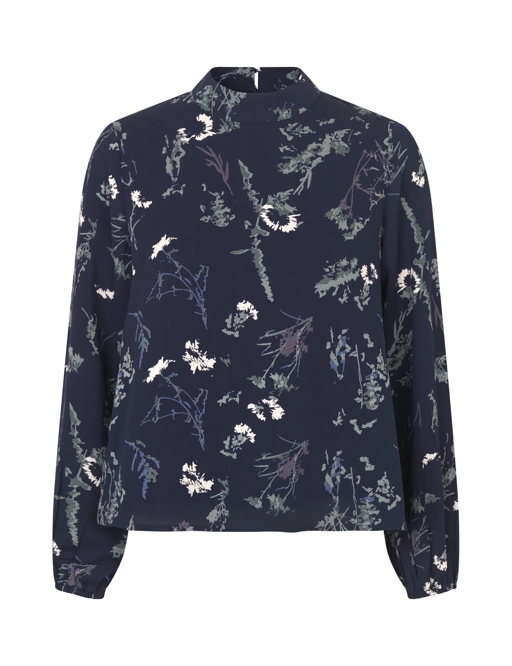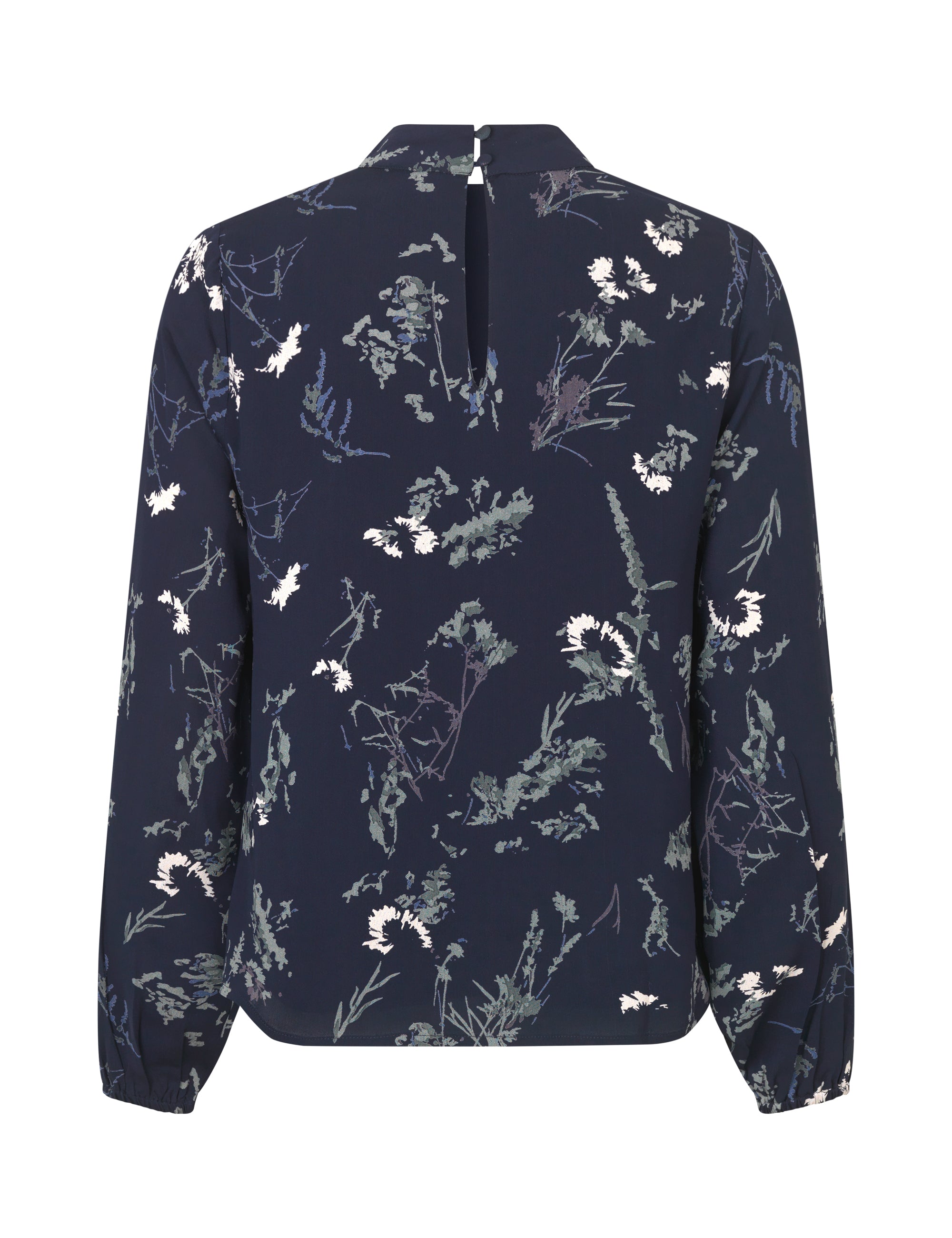 Aliey-M Atheran fra MbyM er en topp med lange ermer. Blusen har en liten krage, knepping i nakken med v utrining og blomsterprint.