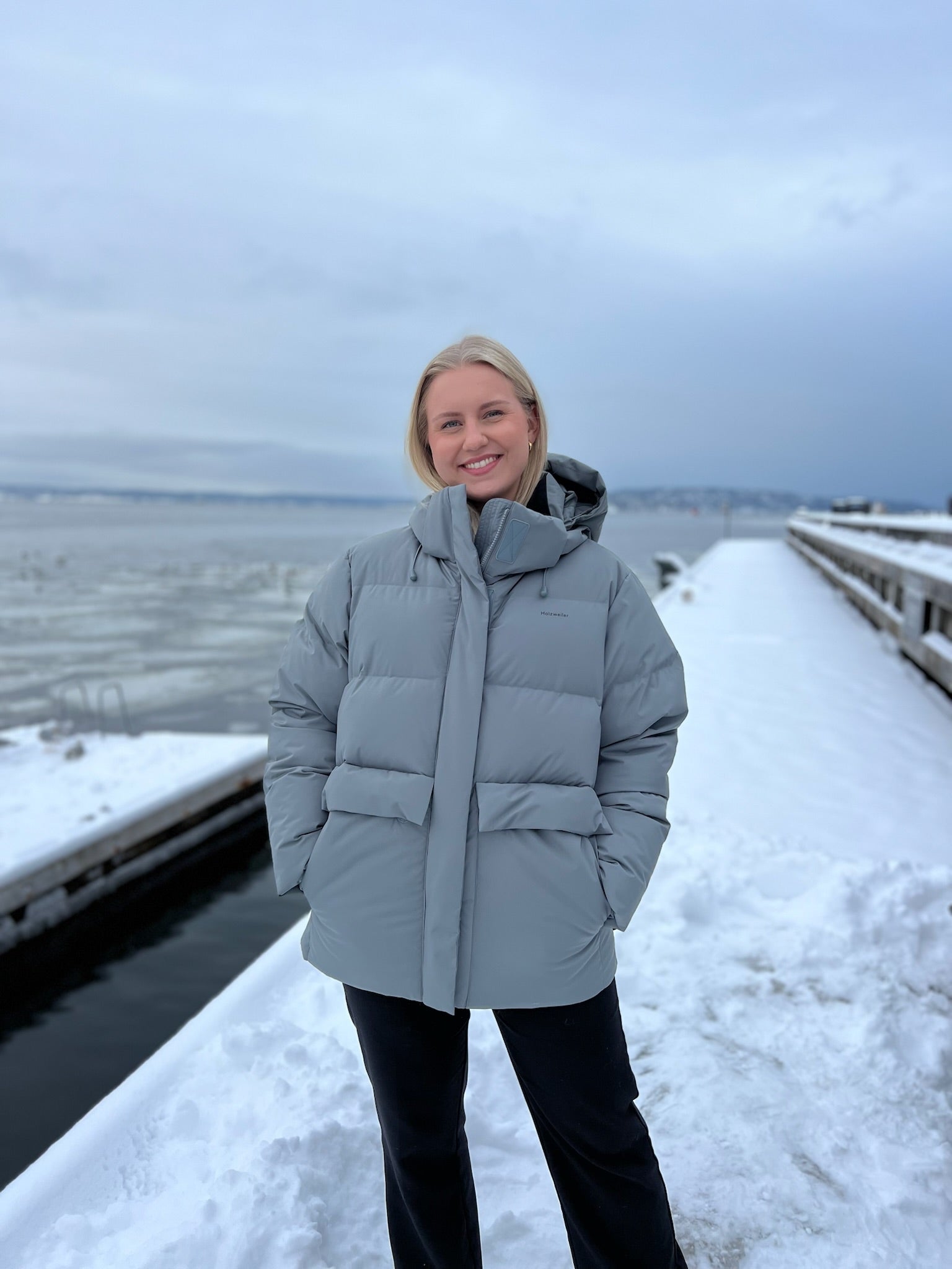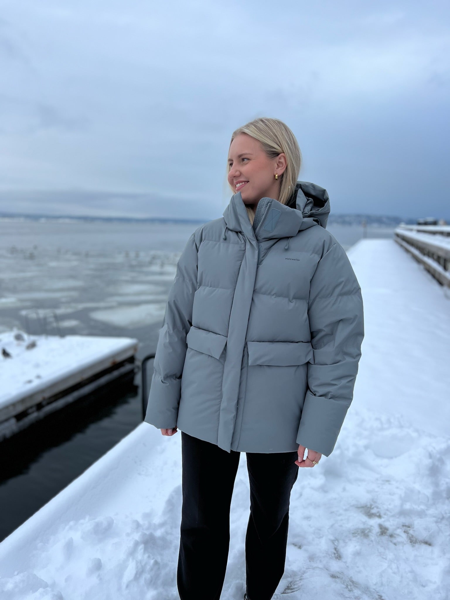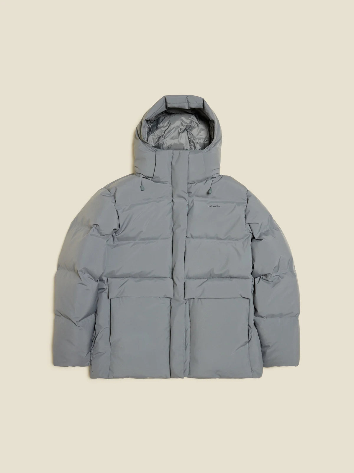 Bestselgende Besseggen Down Jacket fra Holzweiler er en varm og deilig vinterjakke i kort, oversized fasong. Dunjakken er detaljert med avtakbar hette med snøring, to store klafflommer i front, og Holzweiler-logoen trykket på brystet. Jakken er overflatebehandlet og laminert med en hydrofil membran, som gjør den vannavstøtende, med en vannsøyle på 10 000.