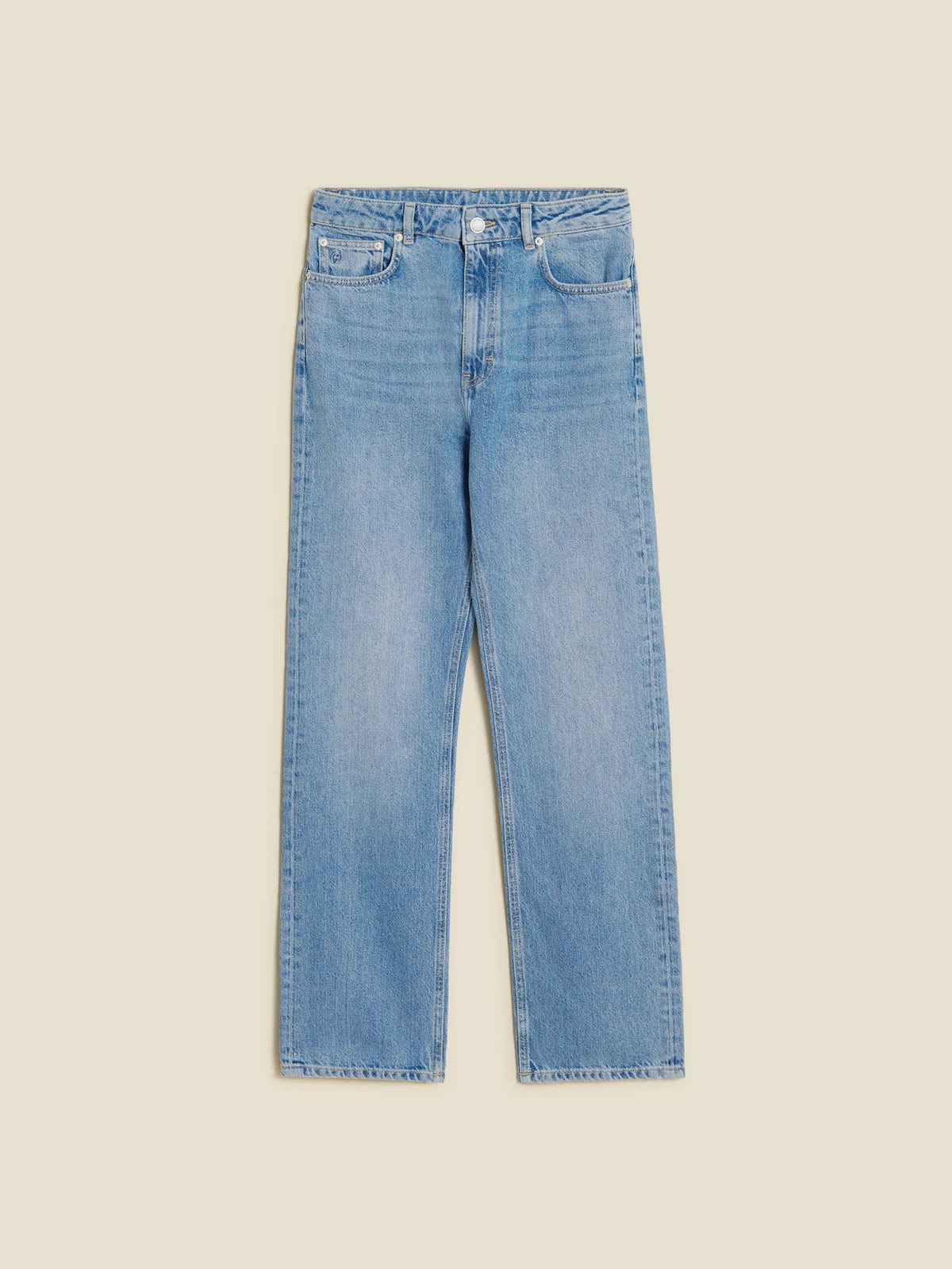 W Regular Jeans fra Holzweiler er en fem-lommers jeans i ren organisk bomull. Buksen har høy midje og klassiske rette ben. Fin til hverdags med sneakers, men kan også pyntes opp med en fin bluse og hæler.