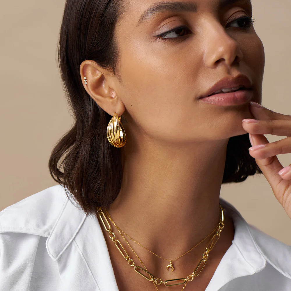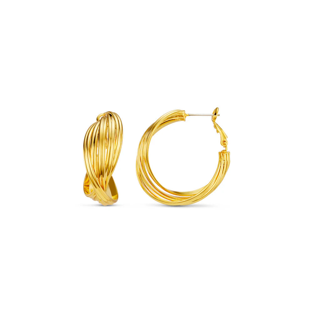 En oppdatering på favorittbøylene våre, Statement Interlocking Twist Hoop øredobber er et perfekt tillegg til samlingen din. Med en vridd, sammenlåsende bøyledesign på en gjengefeste.