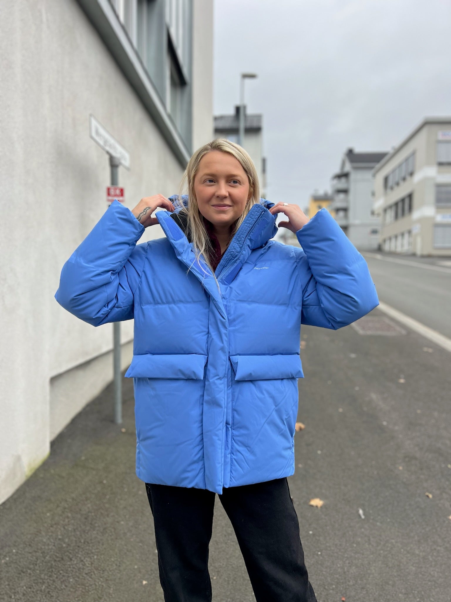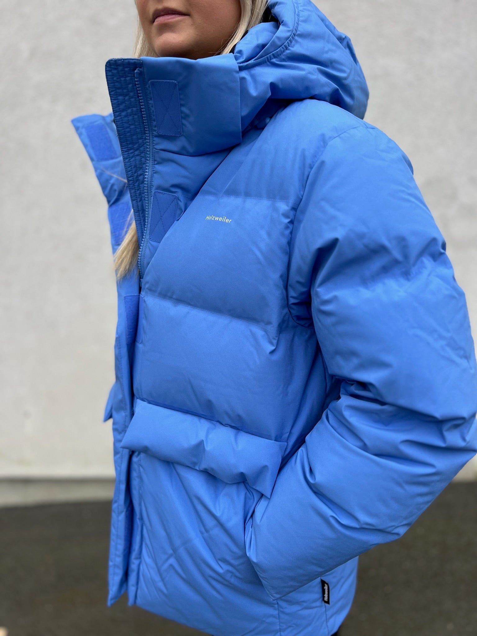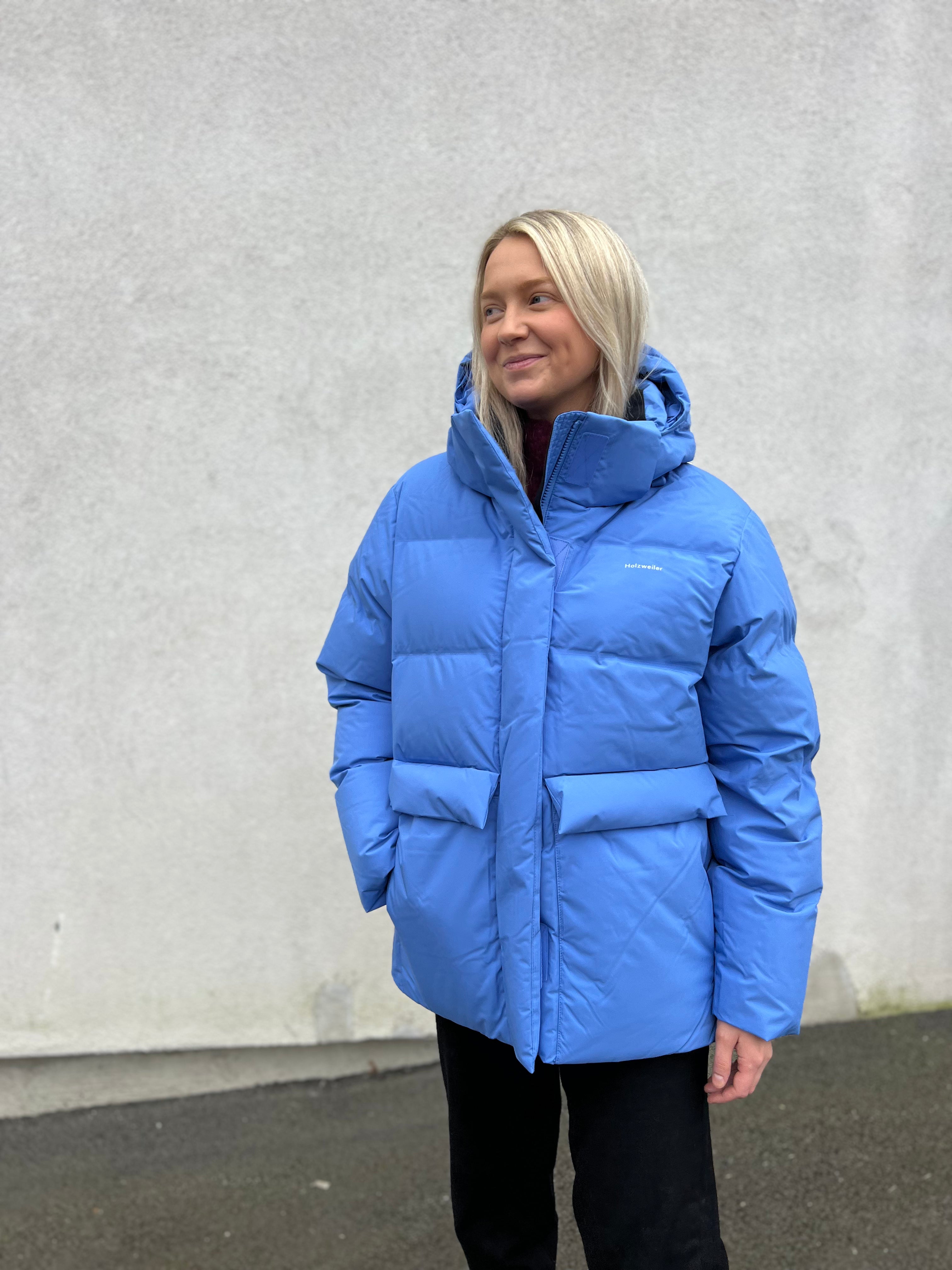 Bestselgende Besseggen Down Jacket fra Holzweiler er en varm og deilig vinterjakke i kort, oversized fasong. Dunjakken er detaljert med avtakbar hette med snøring, to store klafflommer i front, og Holzweiler-logoen trykket på brystet. Jakken er overflatebehandlet og laminert med en hydrofil membran, som gjør den vannavstøtende, med en vannsøyle på 10 000.