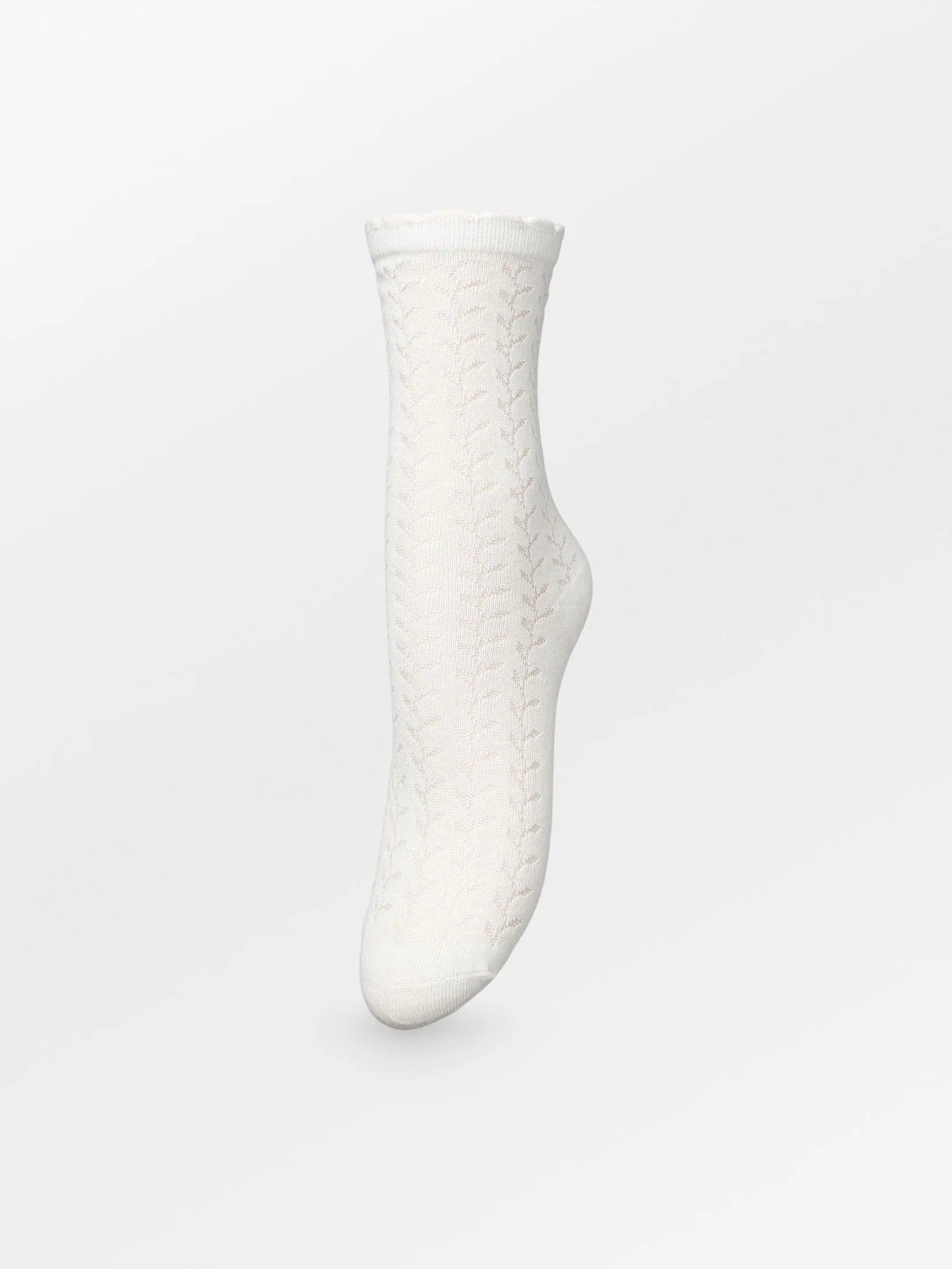 Leofa Cotta Sock fra Becksöndergaard er en elegant sokk som passer perfekt til både ballerinasko og sneakers. De har delikate transparente detaljer og en bølget kant som gir et feminint preg. Et allsidig tilskudd til garderoben.