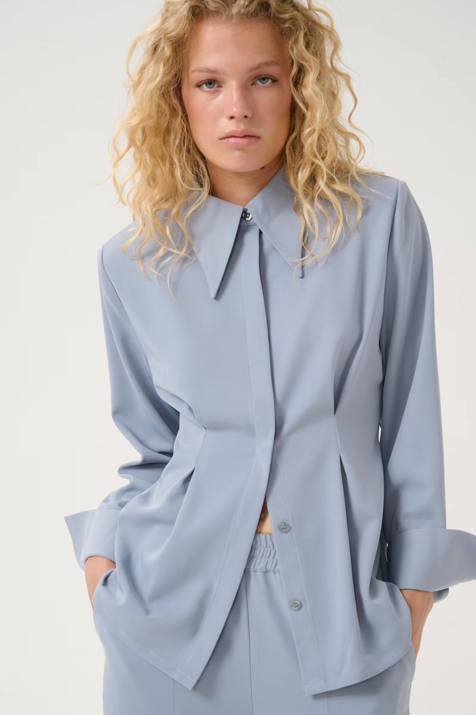 GZMareen Shirt Grey Blue er en elegant skjorte fra Gestuz i en vakker gråblå farge. Skjorten har en flatterende passform med innsvingte detaljer som fremhever midjen, samt en klassisk krage og skjulte knapper foran for et sofistikert uttrykk. Overdelen er laget av mykt og komfortabelt materiale som gjør den perfekt til både hverdags og mer formelle anledninger. Kombiner den med bukser eller skjørt for en stilren look.